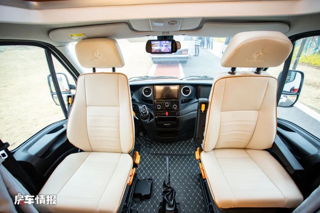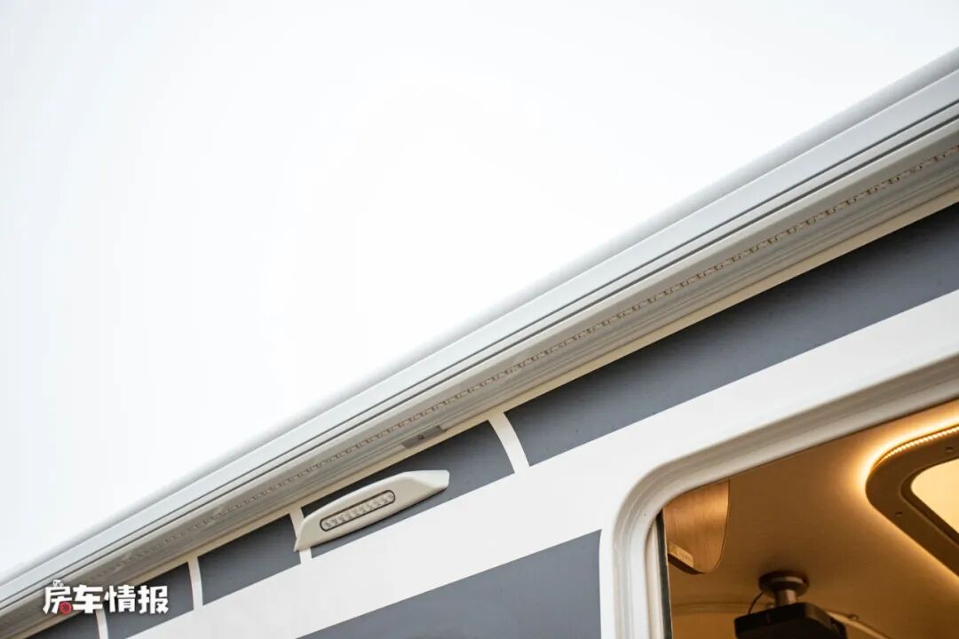 位于驾驶室上方的大尺寸天窗,和我们日常所见的固定式天幕不同,而是采用了可开启的设计,所以当天气好的时候,这个天窗不仅可以用来采光,还能够通风换气,另外也加入了遮挡帘和防蚊纱帘,方便日后使用。