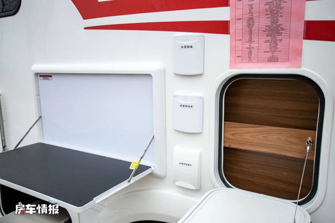 整辆车不仅在安全性上做了很多的提升,车身外部的实用性配置也很齐全,带有遮阳棚、外置抽拉燃油灶、外置翻板、外置淋浴花洒以及超大尺寸的储物舱,可以为日后在车外的生活提供更多的便利性。
