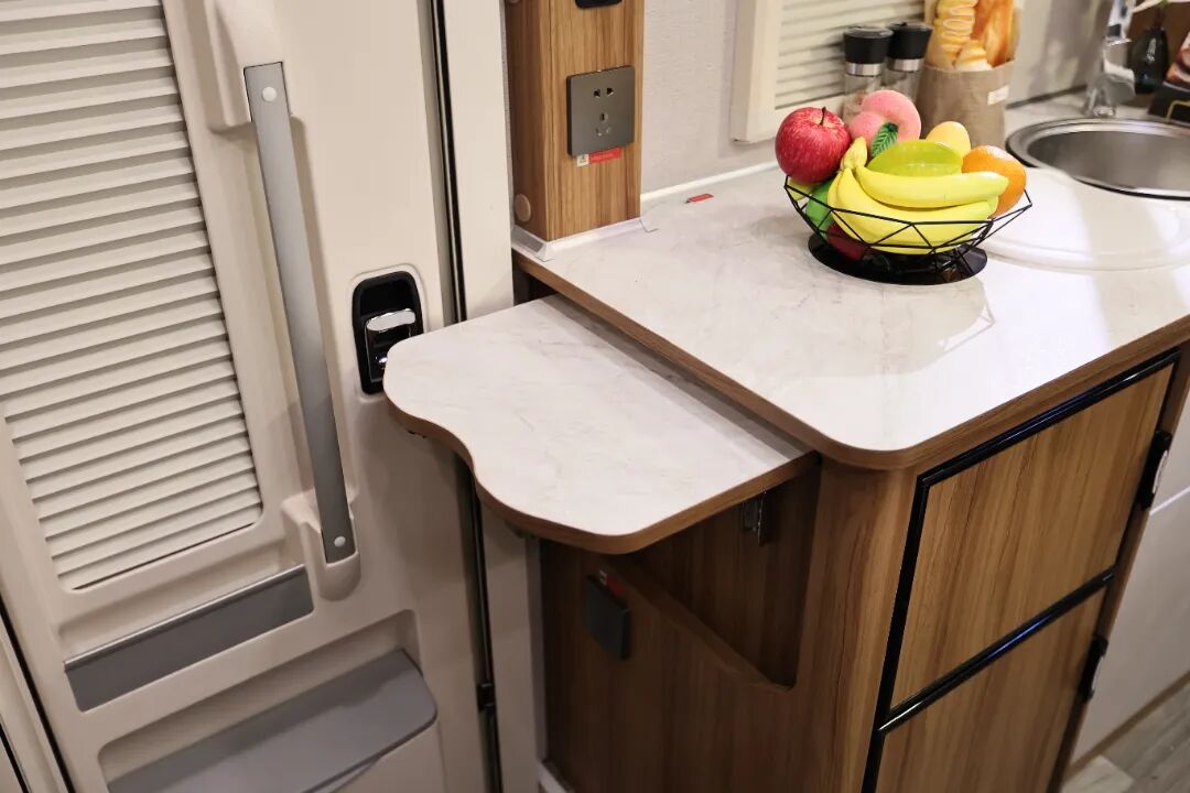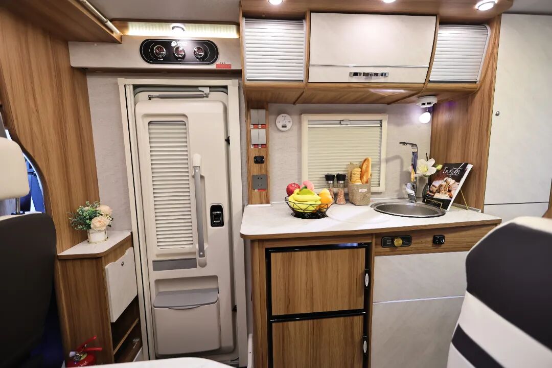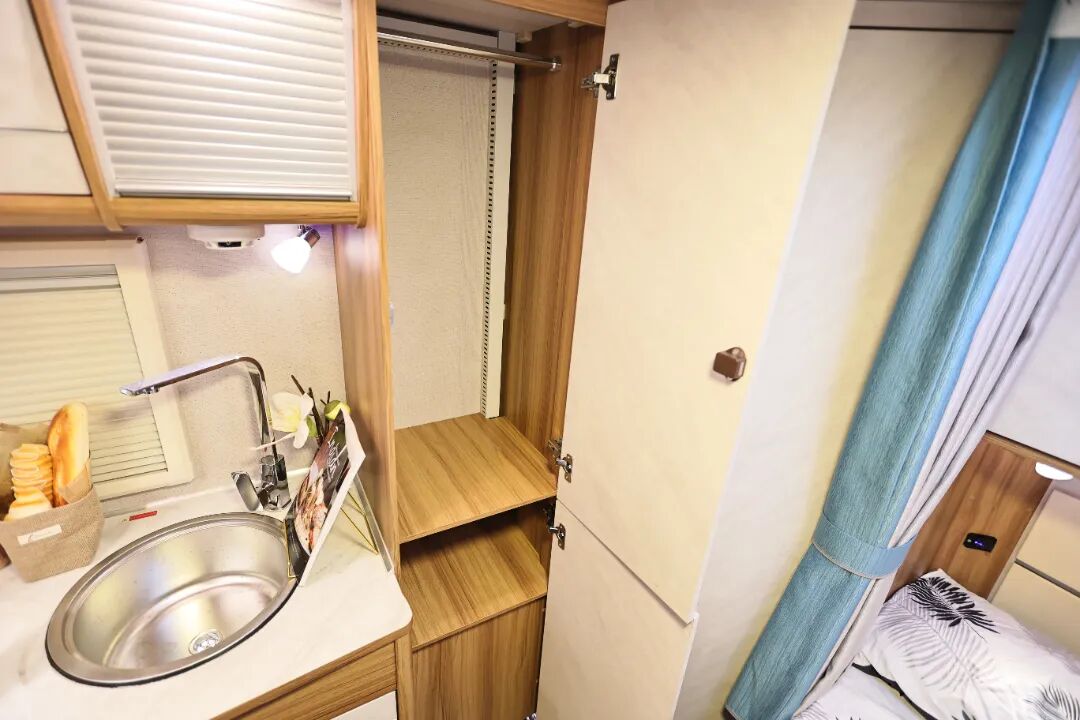 当我们旅行在外,房车上的家便成了温暖港湾,它需要被赋予更多轻快从容的基因。在归家时,升级后的组合收纳空间可以提供多种功能的存放,门口鞋柜上面可以摆放干净的鞋子,下面可以摆放我们外出的鞋子或拖鞋。厨房区旁边宽敞的衣柜可以悬挂我们常用的衣服,车内各类储物格可以将各种物品规整地收纳在一起。科学的厨房收纳体系,也让物品存放更加从容,处事有条不紊,凸显当下年轻人自由与高效的生活常态。