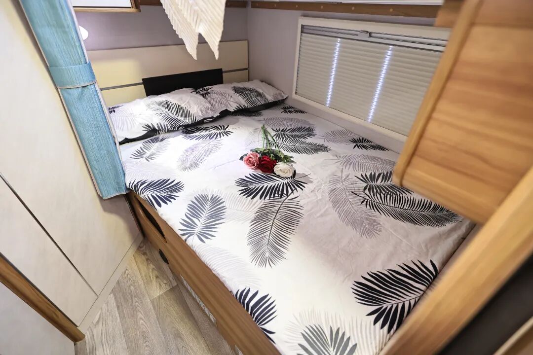 通过科学的空间利用,设计延展出更为充裕的休息空间,在此同样设有观景飘窗及私密卫浴间,营造一个悦己天地。未来居于此,窗外的盎然生机拂动着日常的舒适。1米85的纵置床,两个人也可以舒服的休息。为了让车友靠在床上时更加舒适,我们在背板处做了软包,让我们的背靠上去更柔软、更舒服。