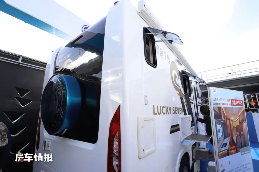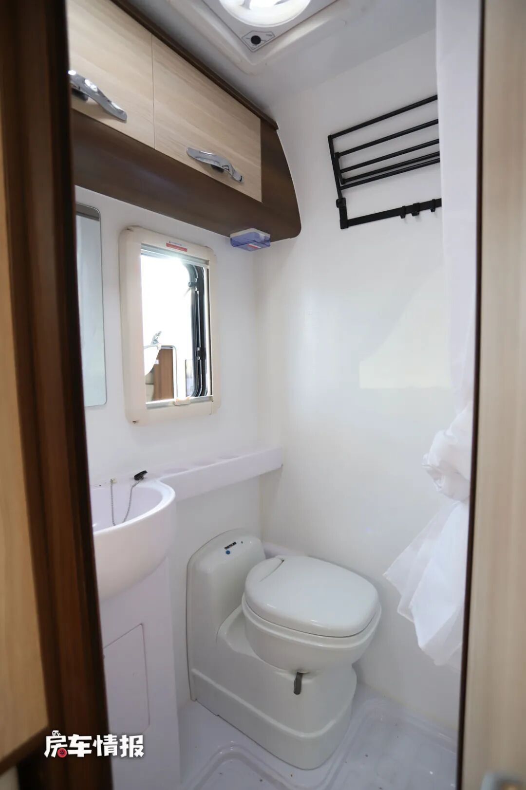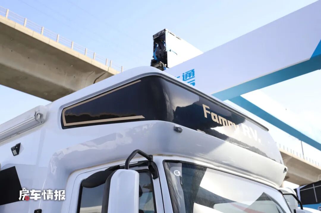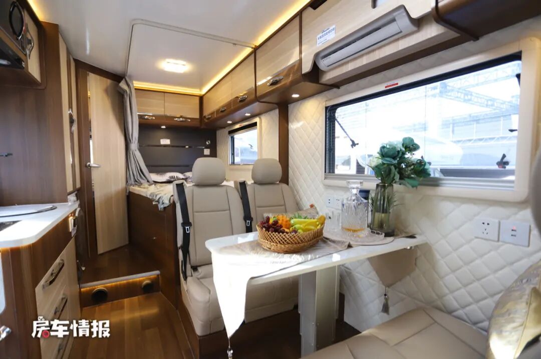 这款房车是基于上汽跃进H500底盘打造的,整车的长宽高尺寸为5995*2400*3200(mm),轴距3300mm,车身不到6米,满足蓝牌C本驾驶。