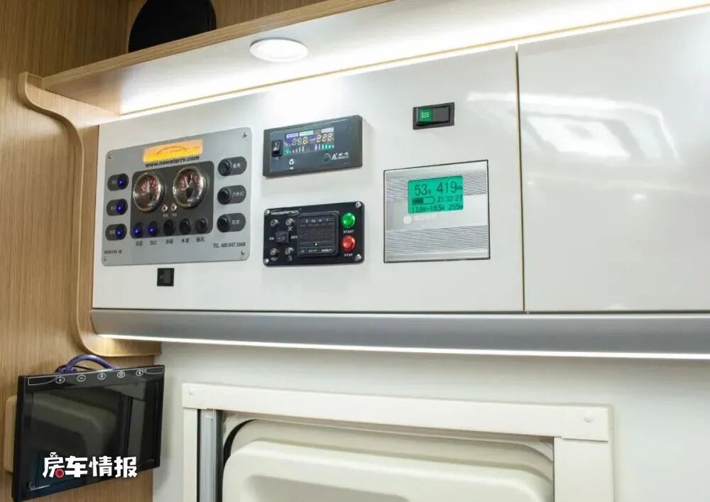 作为一款专业的诊疗车,整体的水电一定要能满足日常车上设备使用的需求,这辆车是配置了3000W的发电机、800Ah的锂电池、200L清水箱和70L污水箱,不过以我个人常去表姐的牙科诊所观察他们给别人看牙时用水用电的经验,整辆车的水电容量还是可以再提升一些的,尤其是水路的容量,毕竟看牙的时候需要经常漱口。