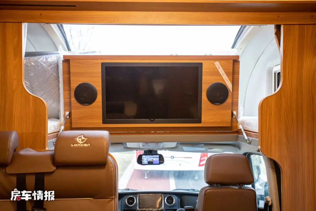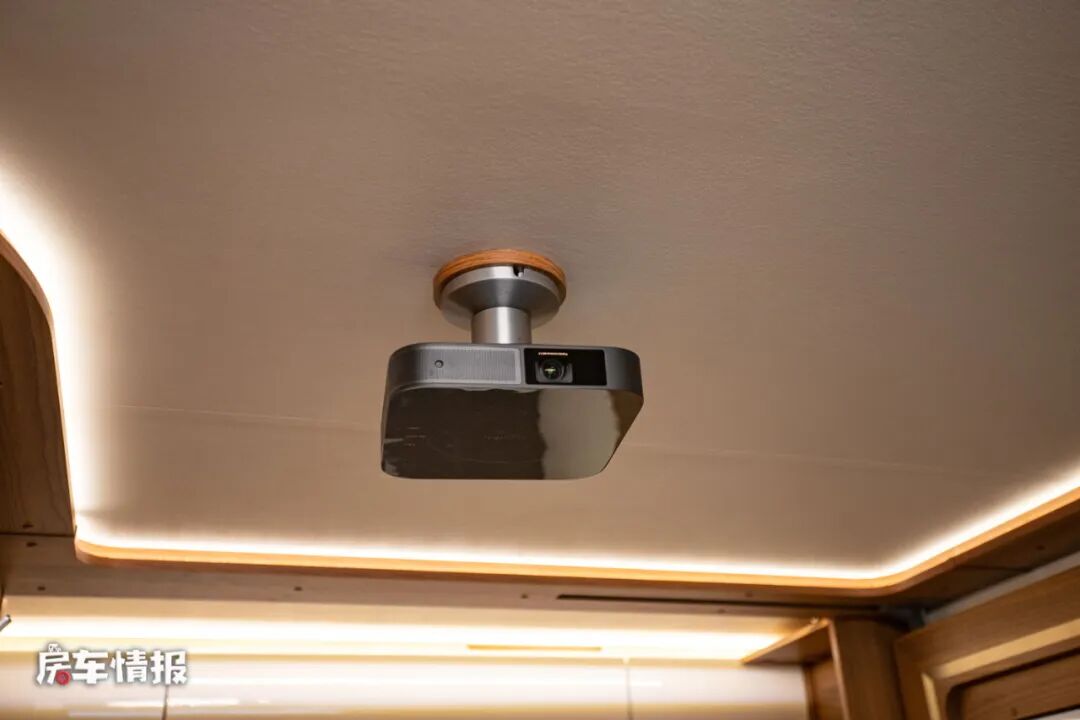 床板下方是标配了一台小米的液晶电视,除此之外全车还配置了一个60寸的幕布和投影仪,可以根据自己的喜好选择观看哪个。