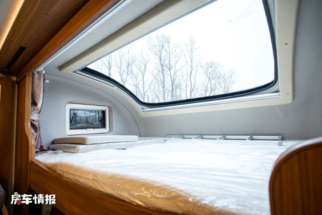 最前方驾驶室顶部的额头区域也得益于外观的造型而更加的宽敞,采用三面环窗的设计,尺寸为2100*1500mm,可以容纳两个成年人使用。