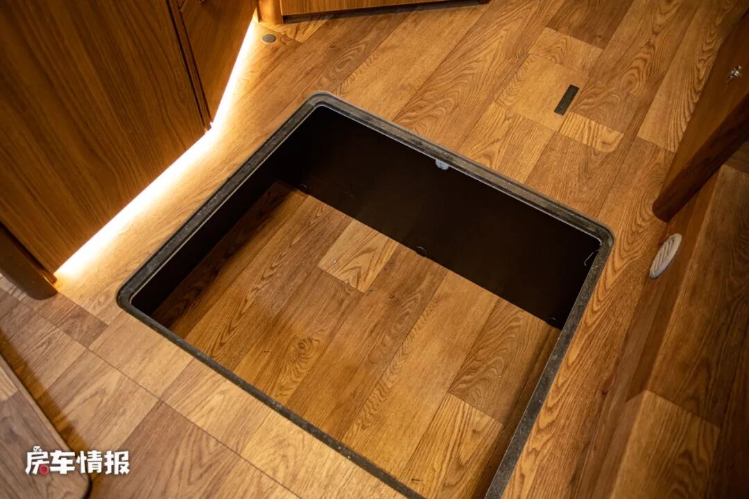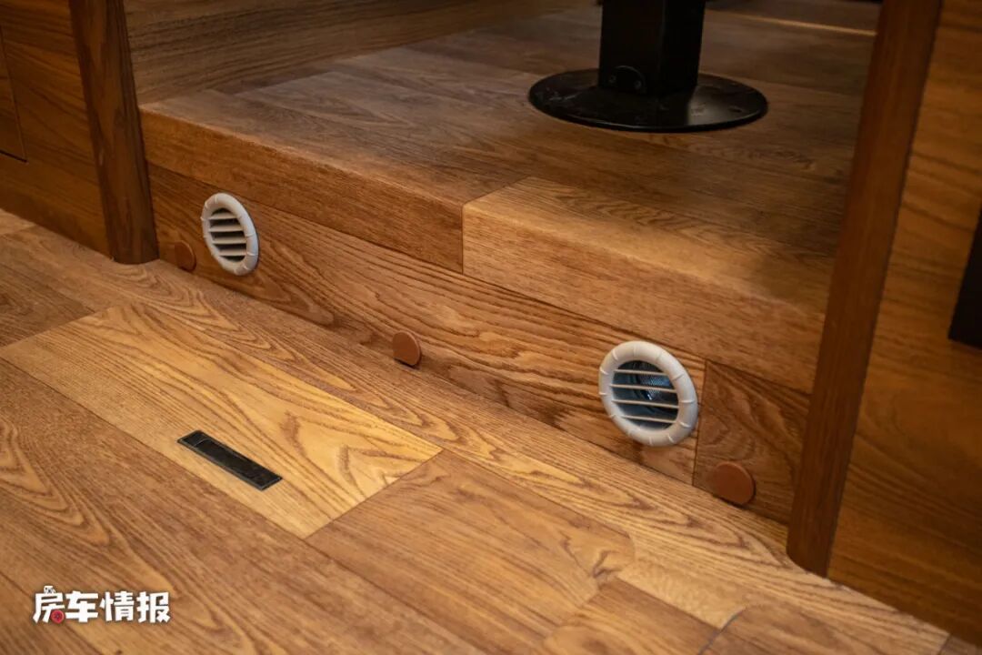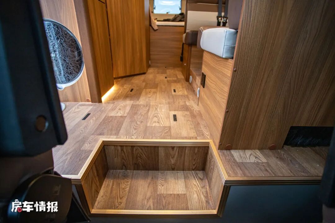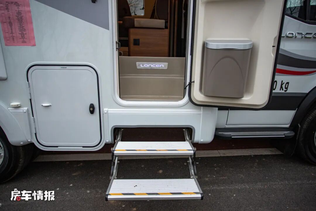 由于整辆车采用的双层地板的设计,所以从车外进入车厢内部一共要经过五层台阶,虽然说高度较高,但是这样的设计是为了更好的安置水电路系统,电路在上,水路在下,这样也可以防止日后发生水路泄漏而造成连电的意外。