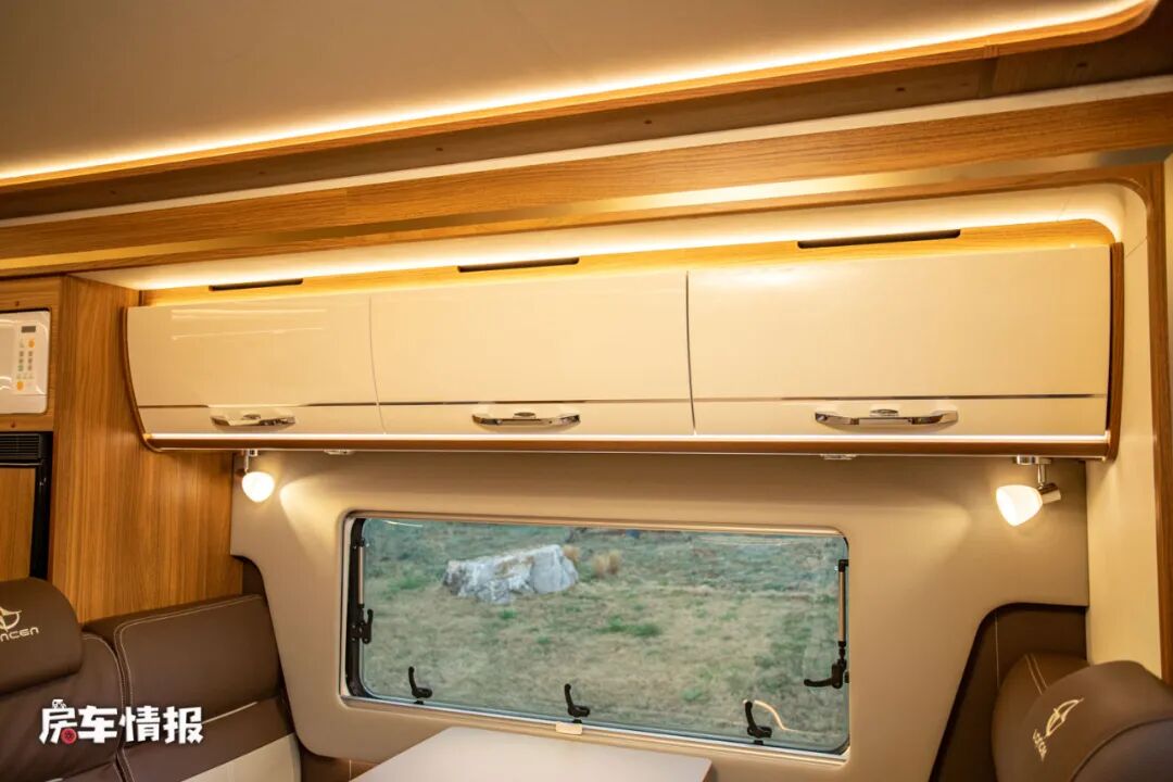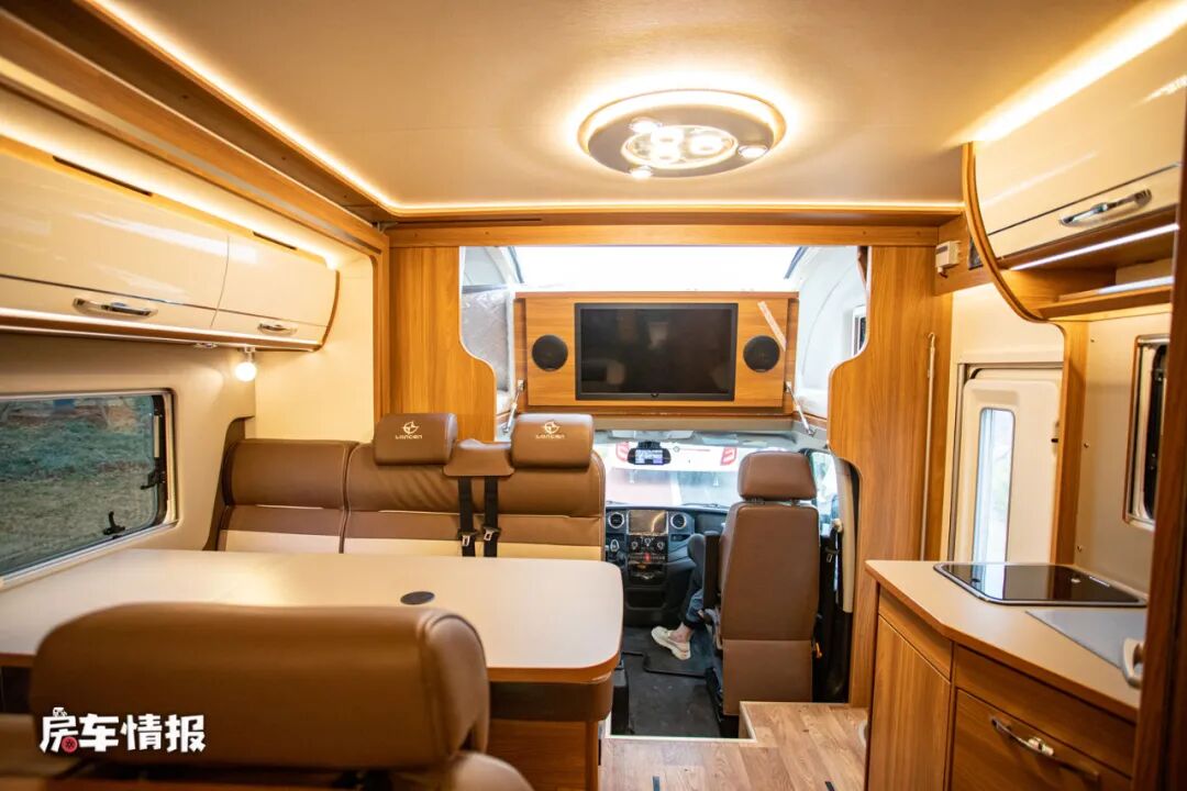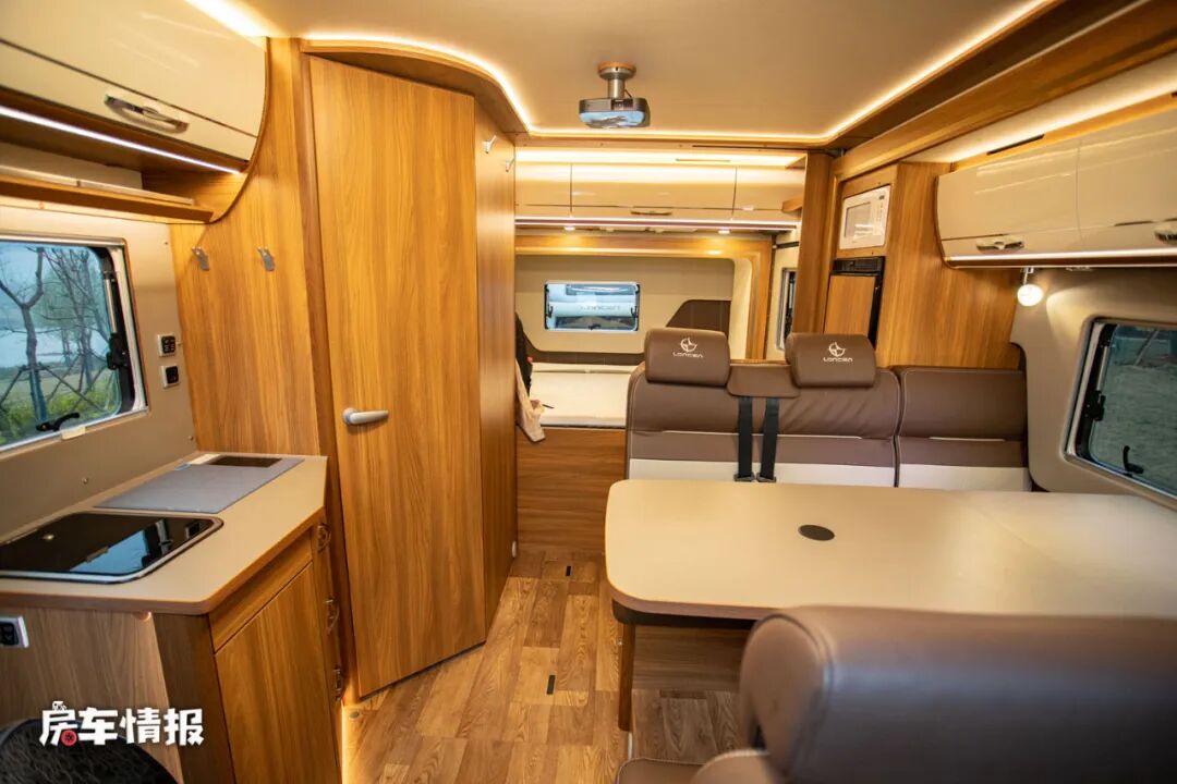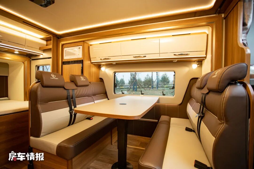 车内还是一如往日朗宸房车豪华且精致的设计,尤其是使用了双拓展的设计使整体的空间感变得更充裕。