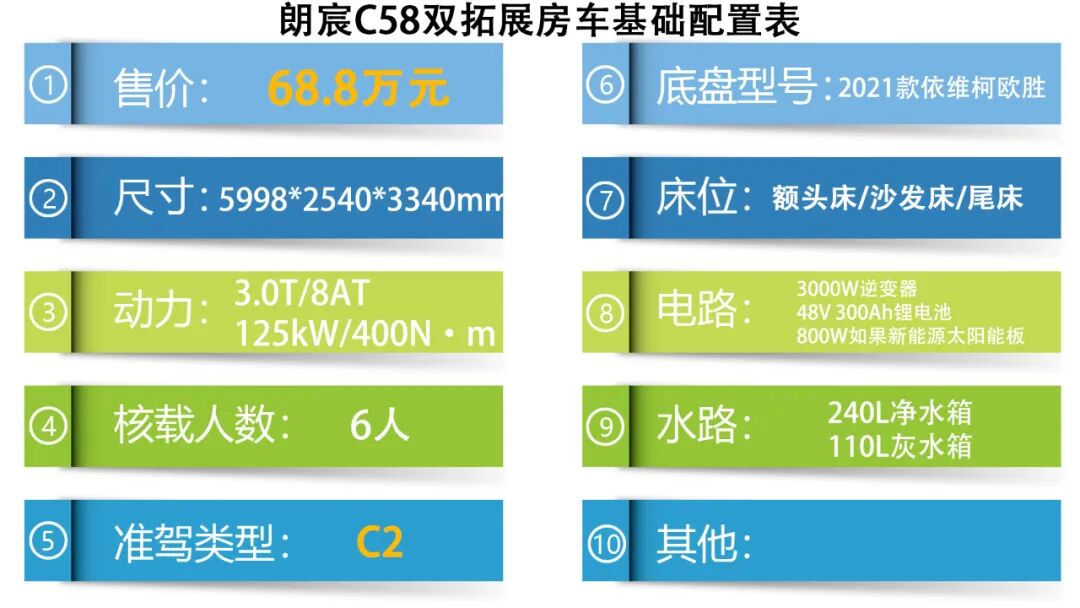 这款搭载6.5吨依维柯底盘所打造的朗宸C58房车,不仅具有较高的外观颜值和内饰,在布局设计上也是颇有新意,另外水电路上的配置也比较丰富,现在这款车的最新报价为68.8万元(具体配置以厂商公布为准),不知道您觉得如何呢?欢迎在下方的评论区和我们交流互动,分享您的观点,下期再见~