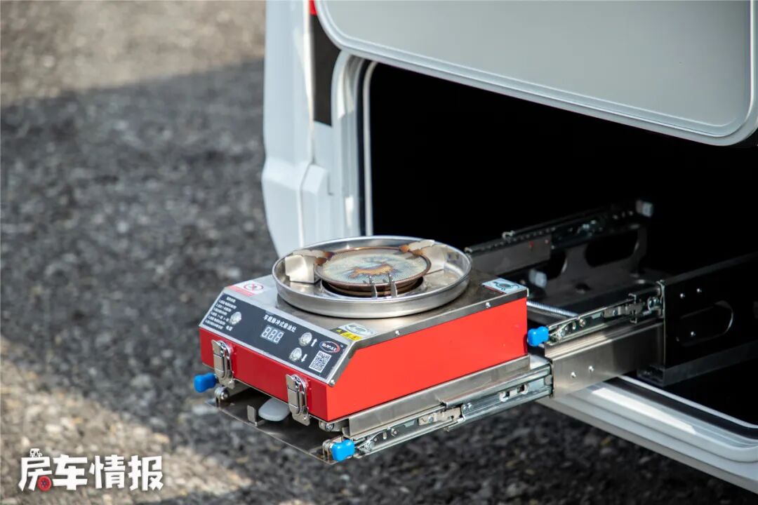 另外在后方还提供了一部抽拉式柴油灶,可以直接从油箱取油,日常做饭会更方便,不用担心单独补给燃料,只不过柴油灶的高度稍微有些低,日常使用的时候需要蹲着或坐个小马扎。