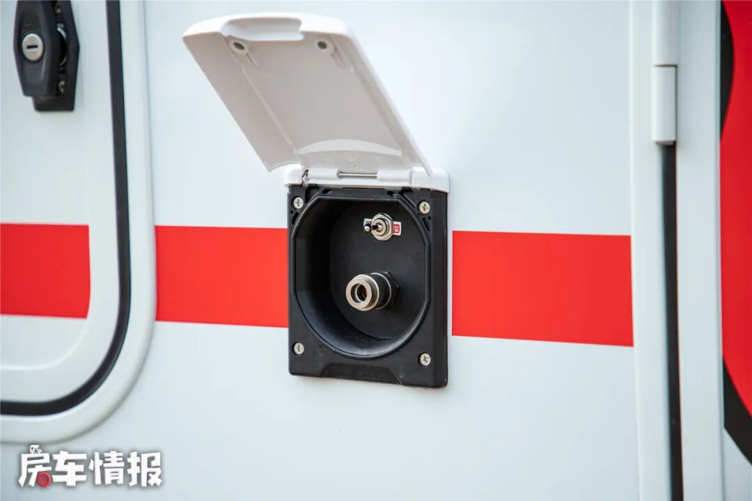 充电口一旁的净水箱注水口也有小机关,常规注水口旁还提供了一个自吸式注水口,当不方面使用水管为车内加水的时候,也可以利用水桶把水提到车旁,然后直接用水泵吸入水箱,这也是一个挺符合实际使用场景的小设计。