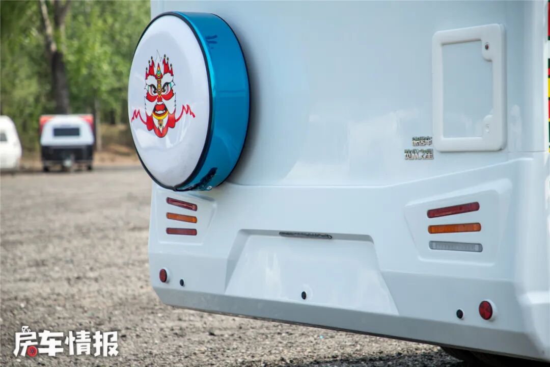 车身尾部则提供了一个外挂式备胎、倒车影像、360°监控、流媒体后视镜摄像头以及倒车雷达,进一步提升了日常行车的安全性。