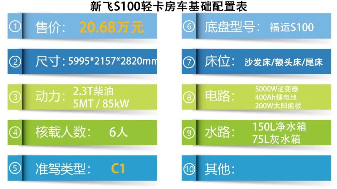 这款国内唯一一款搭载上汽跃进福运S100底盘所打造的新飞房车,可以说除了底盘比较冷门之外,整体的配置还是不错的,它的最新报价只有20.68万元(具体配置以厂商公布为准),可以说是性价比非常高了,不知道您觉得如何呢?欢迎在下方的评论区和我们交流互动,分享您对此车的看法和观点,下期再见~