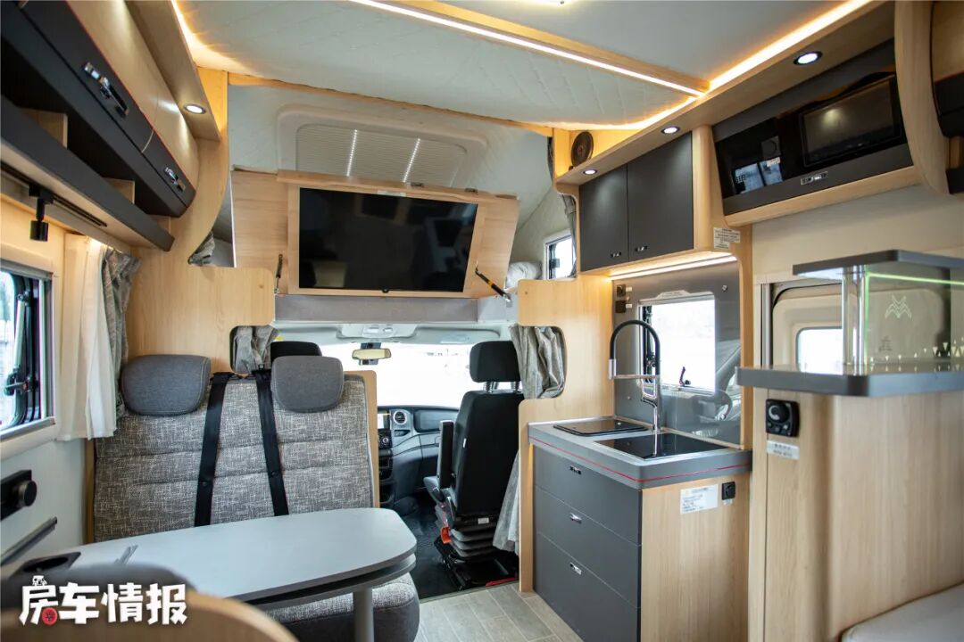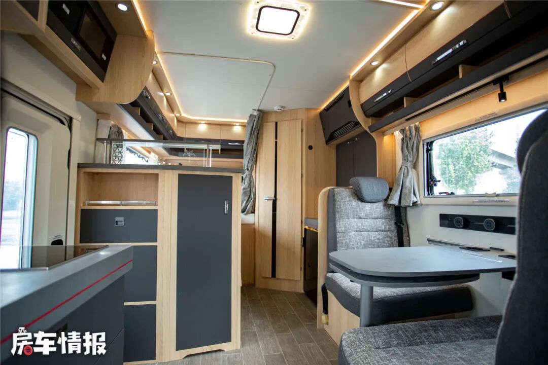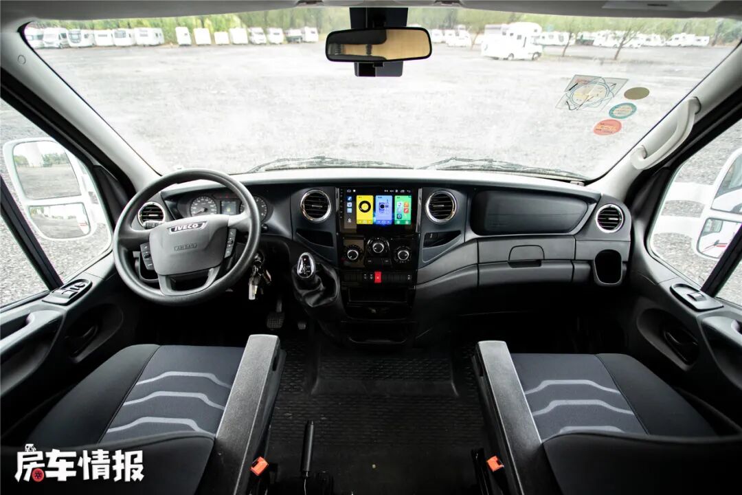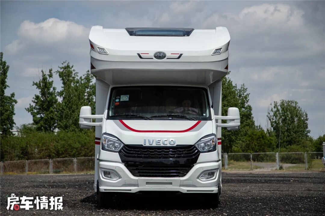 车头部分也延续了自家品牌的一贯设计风格,黑色的中网搭配运动化前包围,在车头部分营造出了不错的立体感,和常规的依维柯C型房车相比,不仅提升了颜值,同时也更有品牌辨识度,个人很喜欢这种设计。
