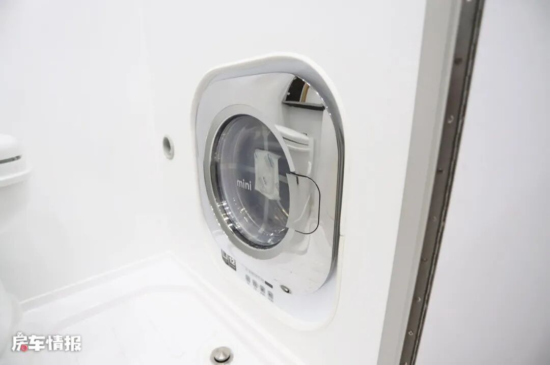 另外在马桶对面的壁板上还暗藏了一台迷你洗衣机,平时可以洗一些小型衣服,使用起来还是很方便的。