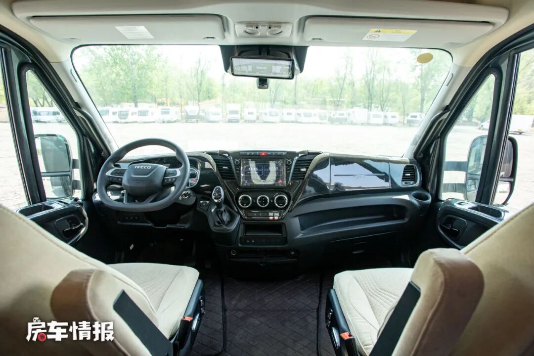 另外在驾驶辅助功能上,进口的依维柯底盘是提供了自适应巡航、胎压监测、陡坡缓降、车道偏离预警系统、车道保持、防侧风等,可以提升整车的安全系数。驾驶室座椅也都采用了气囊减震的设计,并且加入了电动调节的功能,对于长时间的驾驶也能提供良好的舒适性。