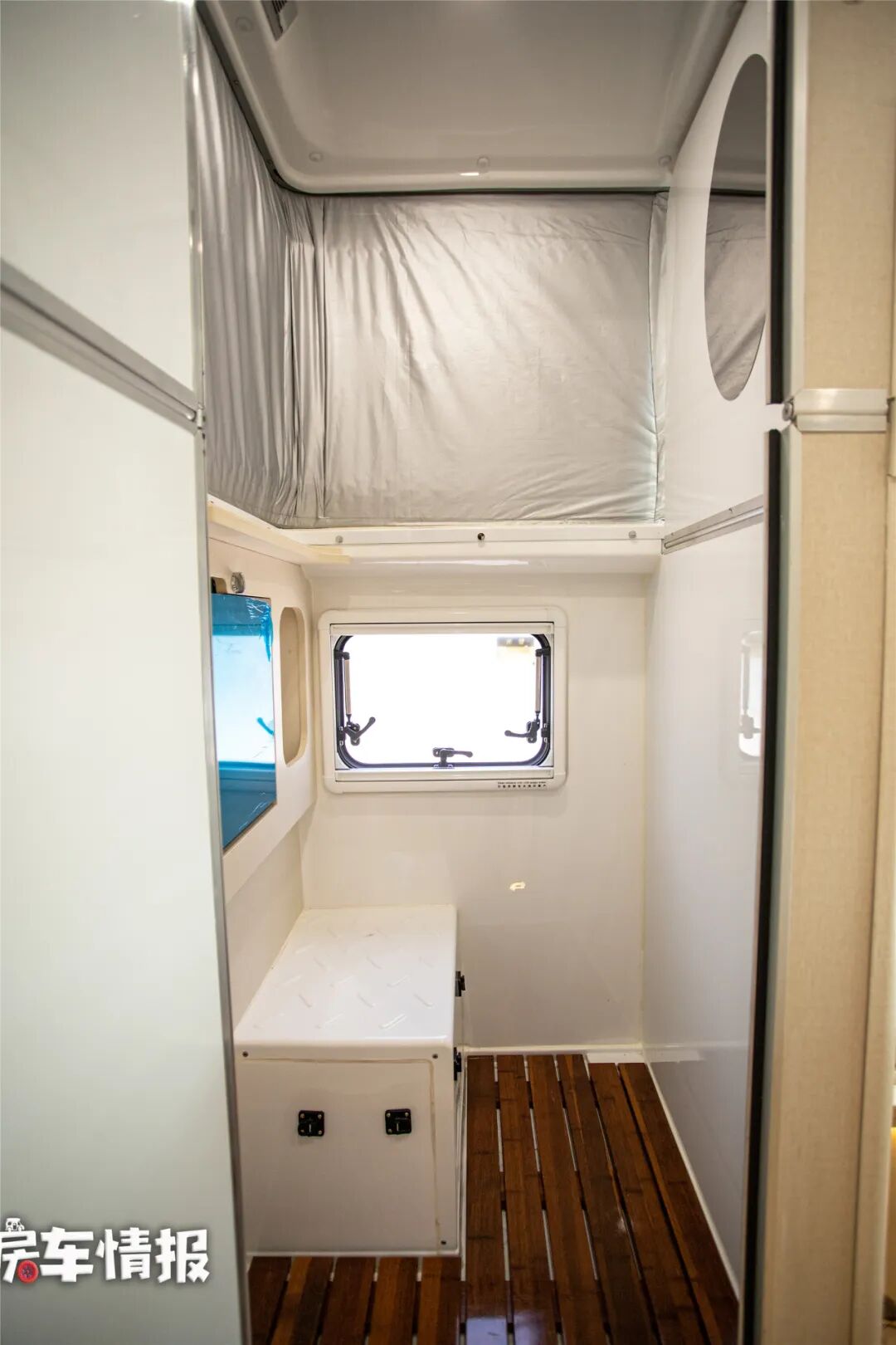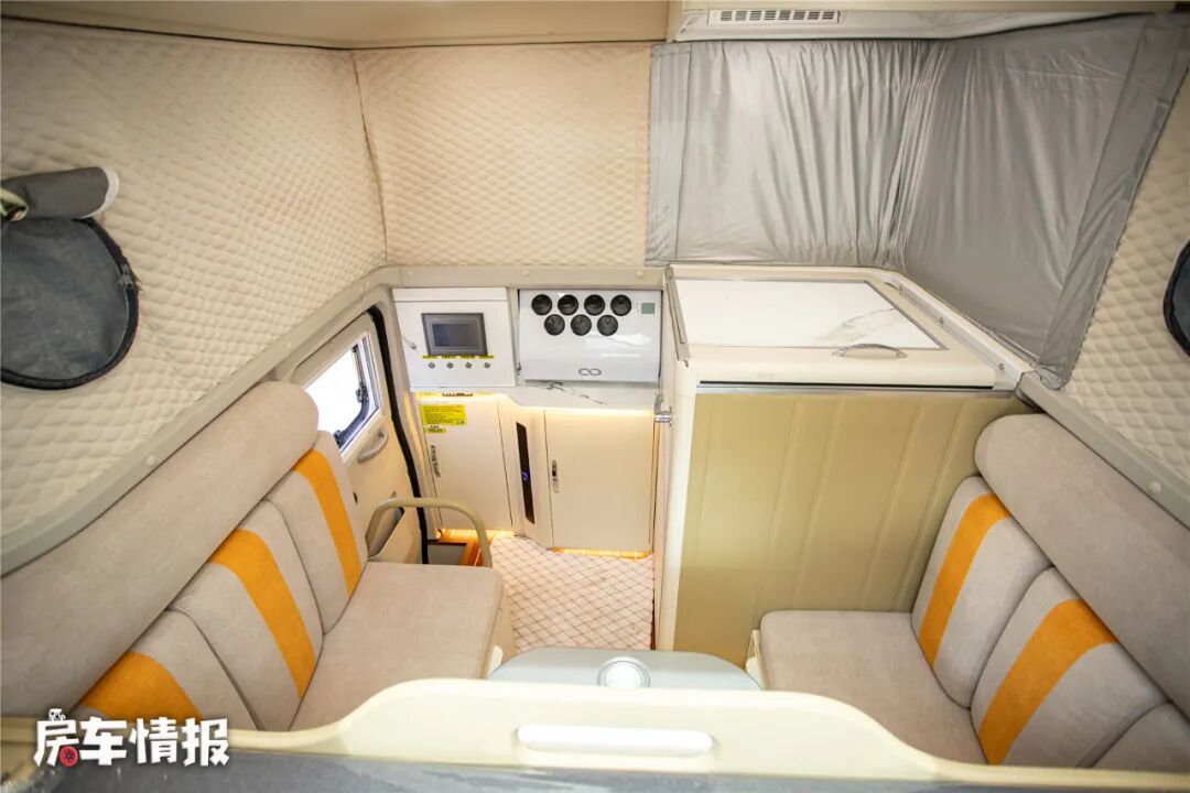 接下来就是大家关心的房子部分,进入生活区之前,将车顶升起,这时候再进入车内就不会顶头了。