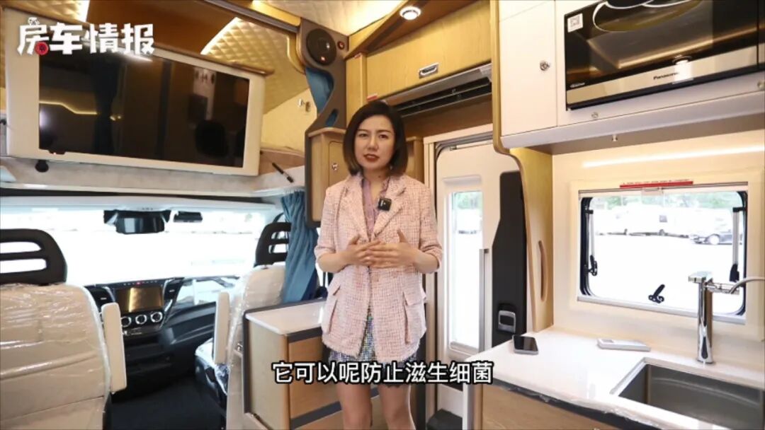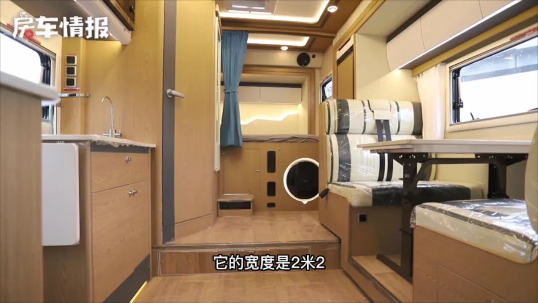 车内也进行了全方位的升级,六层地板也在很大程度上提供了车内不错的保温性能,另外整车搭载了48V电路系统,全车标配21.5度电,车顶还提供过了1350W太阳能电池板,不仅自带电量够足,这款车还搭建了一个完整的自循环高效率的系统,对车上各个电器、水箱等系统进行闭环整合,提高了工作效率从而在能源的使用上达到了出色的优化,详情还是来看视频吧~