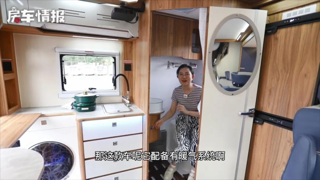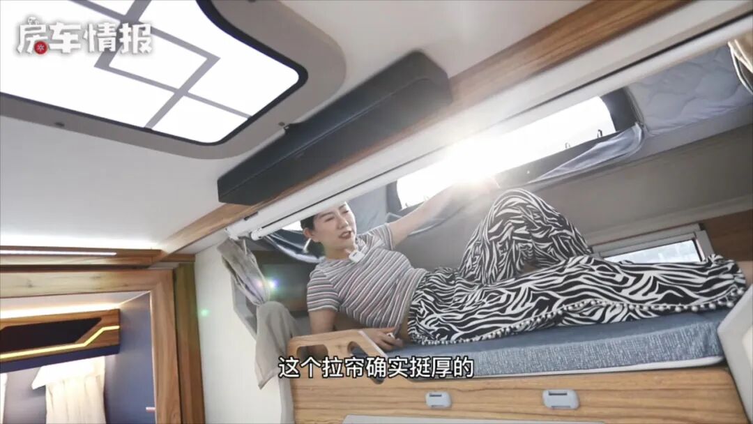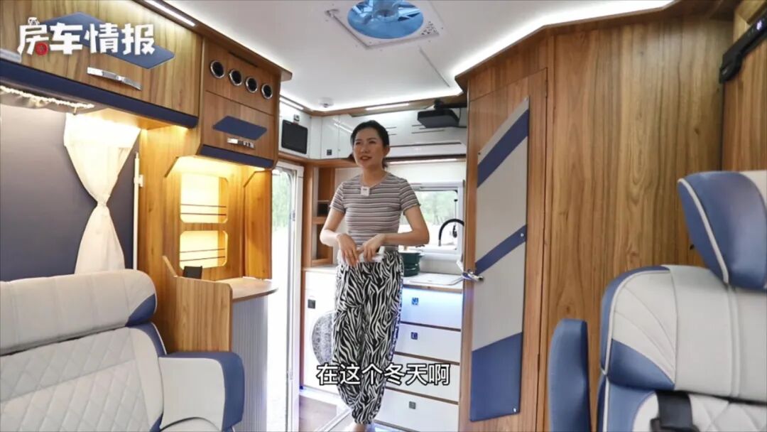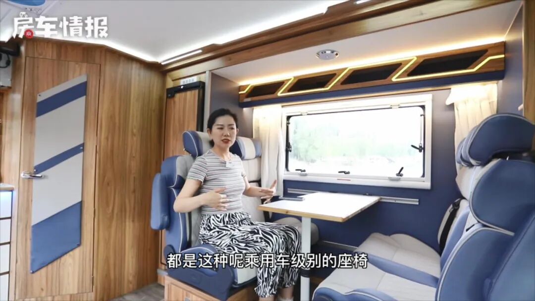 在车内还采用了一个当下大家喜闻乐见的后入门布局,为此带来了一个相当宽敞的生活区空间,搭配上原木色的家具和双拼色座椅,营造出了不错的豪华感,另外车内加入了双层地板,以便于在车内布置暖气系统,这样在天气冷的时候也可以居住,另外车上还提供了13.4度电以及太阳能板,可以基本解决旅行中的用电需求。