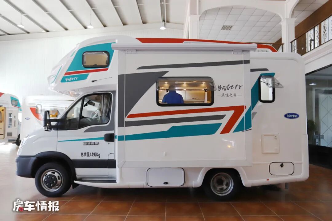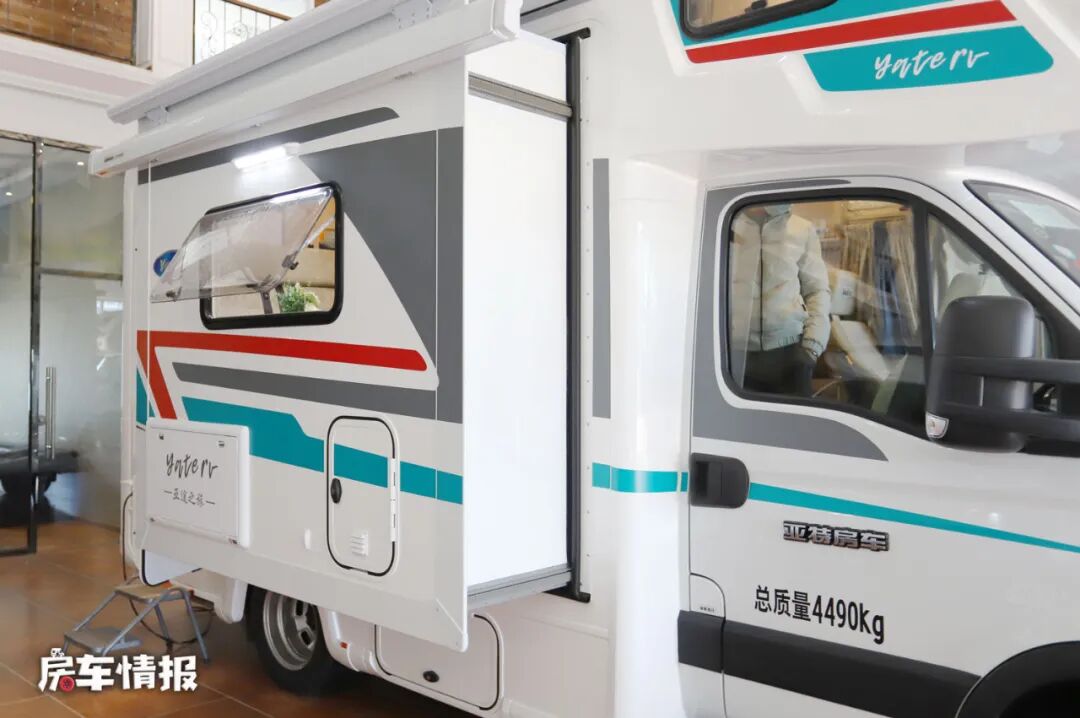 这款亚特尊领DT房车是国内首次在依维柯底盘上使用对拓展设计的一款房车,可以说是国内首创设计,虽然在关闭拓展舱的情况下,整辆车从外观上看依然是一辆主流的C型房车,搭载国产的依维柯欧胜底盘,其尺寸分别为5990*2545*3190mm,不过由于亚特独有的厢体加宽式设计以及双拓展的设计,可以使内部达到一个极为宽敞的空间。