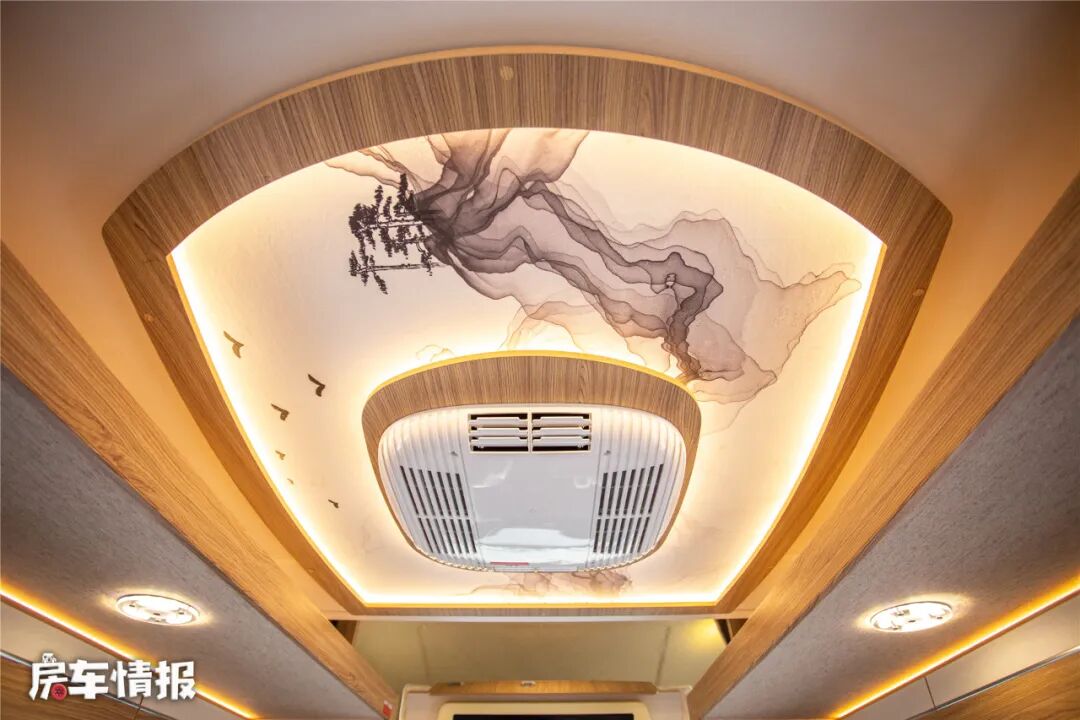 整车采用了后上门的设计,车内的装修风格也比较的豪华精致,加上大空间的优势,使整辆车的内部都显得非常通透和明亮,而且这款车的顶部也加入了水墨画的设计,为全车的颜值提升了不少档次。