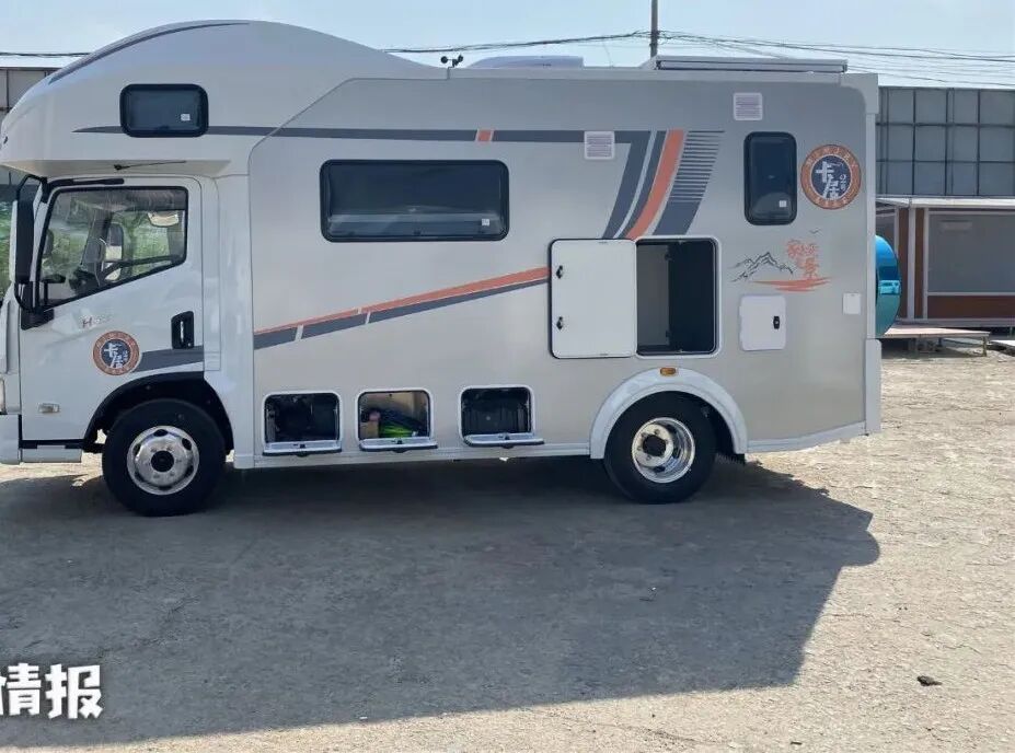 车身外部还提供了很多的房车生活设备,外置抽拉燃油灶、储物箱、遮阳棚等一应俱全,另外值得注意的是,厢体底部也预留出了多个检修口,方便查看底盘情况或加油、加尿素等操作。