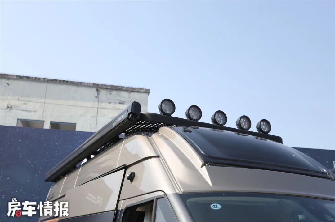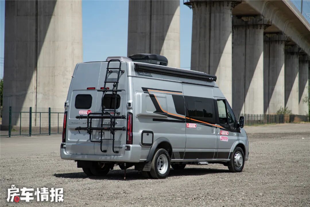 更重要的原因之一就是颜值更帅,尤其是选装了车顶行李架和前射灯以后,让整车看起来有点越野范儿,车尾部还提供了独家定制的一体式爬梯和自行车架,让整车更接近于海外流行的Vanlife车型。