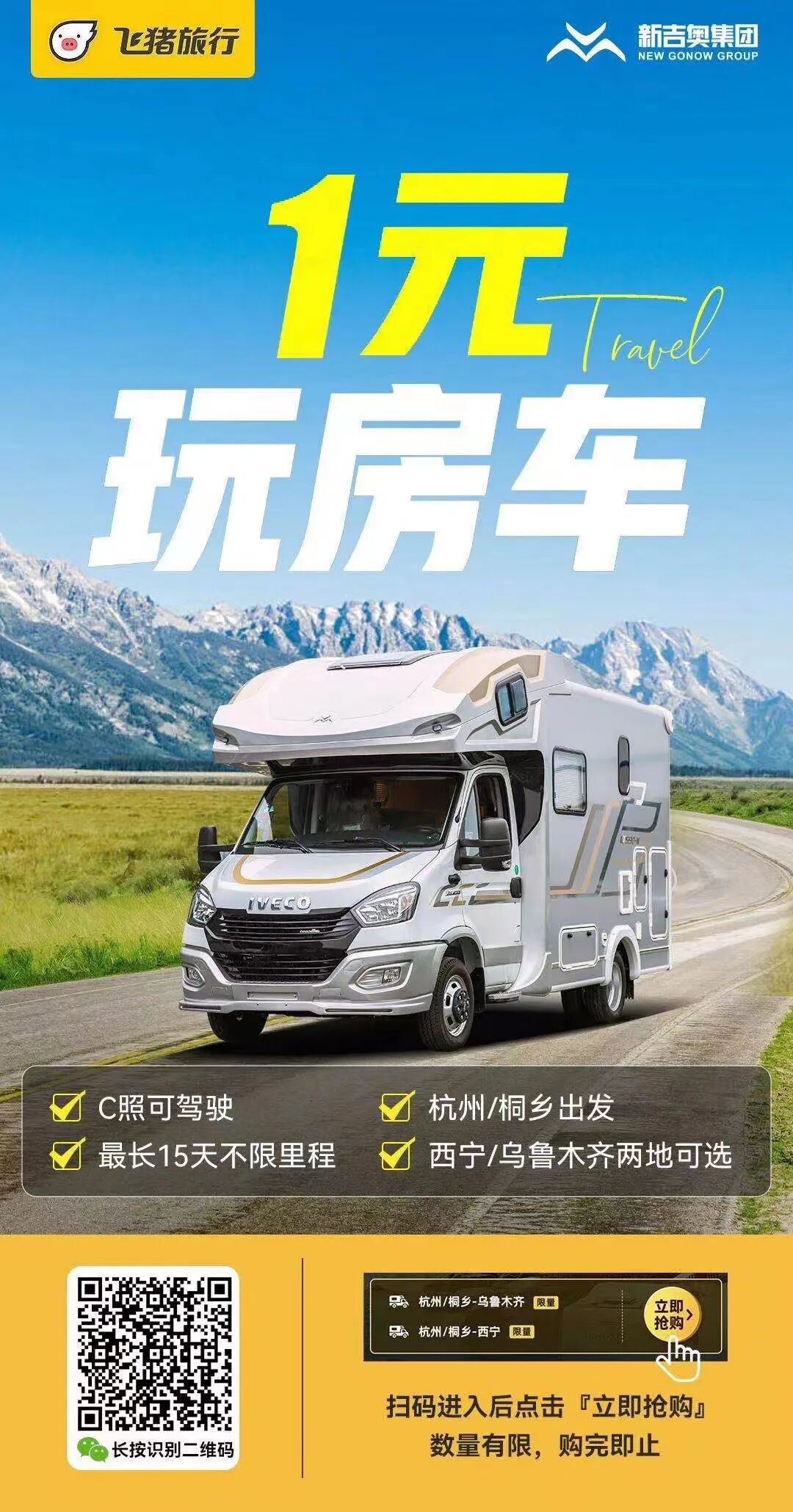 新吉奥联合飞猪推出“一元玩房车”,吉行西北,飞同寻常