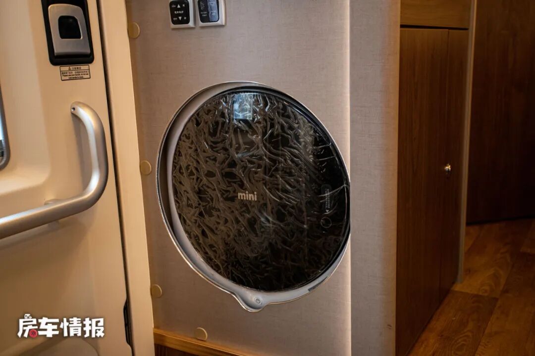 而在厨房外侧则是一台3kg洗烘一体机,也能清洗一下贴身的衣物。