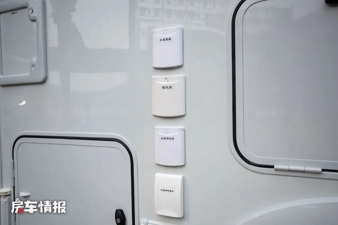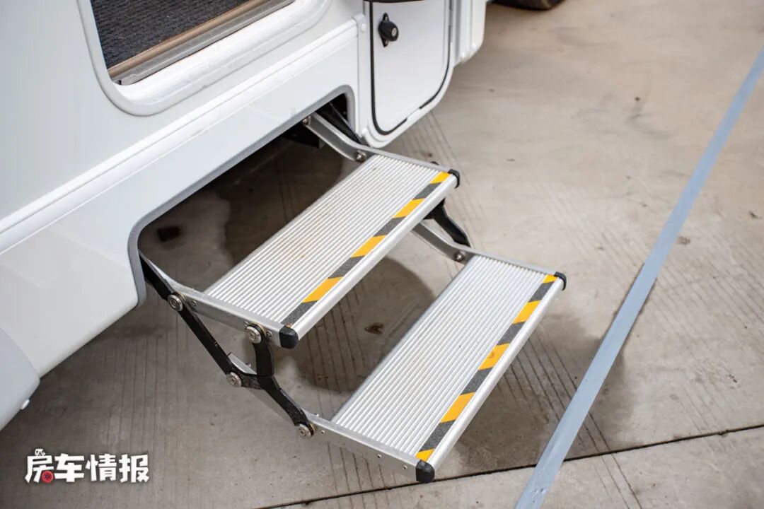 那为什么这辆车会如此之高的,根本原因是这辆车采用了一个双层地板的设计,为的是将整车的水电路可以置于地板之间,以此来提升水电路的安全性和保温性能,所以相对的这款车的离地间隙也有所增高,不过带有电动踏步,也方便了后期上下车。