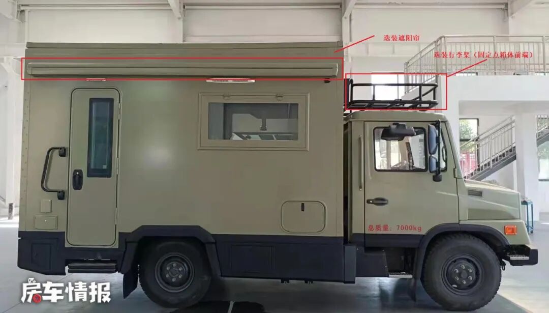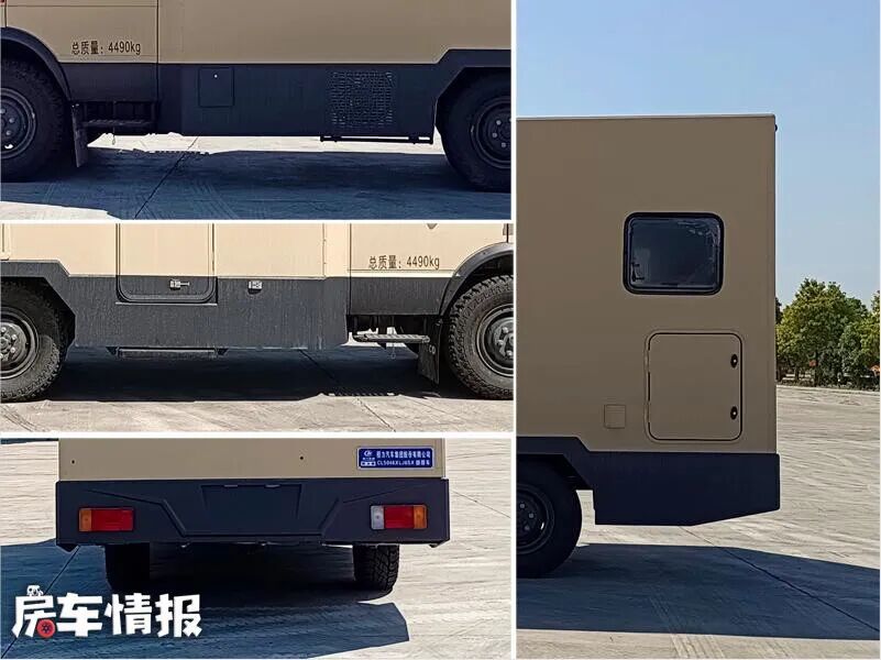 第一眼看到这款竣博牌JCY5070XLJF6旅居车就会给人留下深刻印象,反正的造型、颇有军用卡车的既视感,看起来让人觉得十分硬核,而关于这款车底盘的详细信息,公示内容里提及的比较少,只能通过车标猜测底盘来自东风华神。