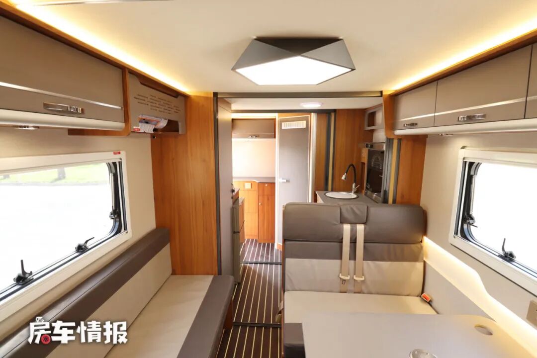 生活区的空间表现同样如此,依然是处于两类卡车房车中间,而这款车还采用了一个后入门的布局方式,也让生活区的空间显得比较大,一家四口人在车内可以自由活动。