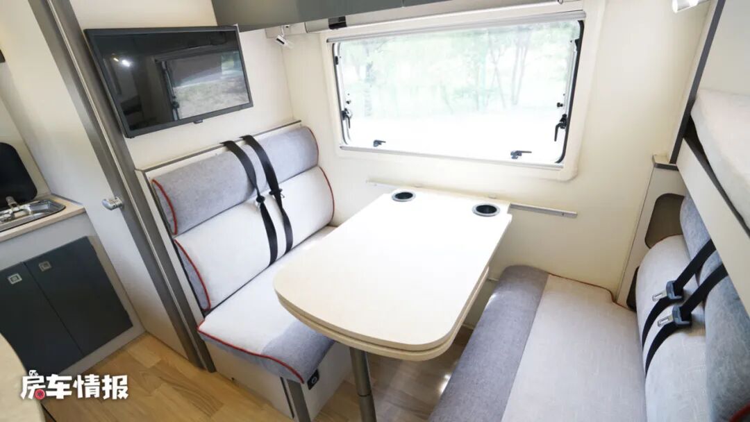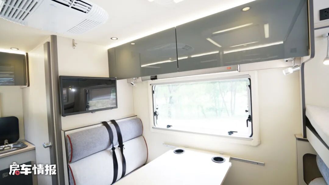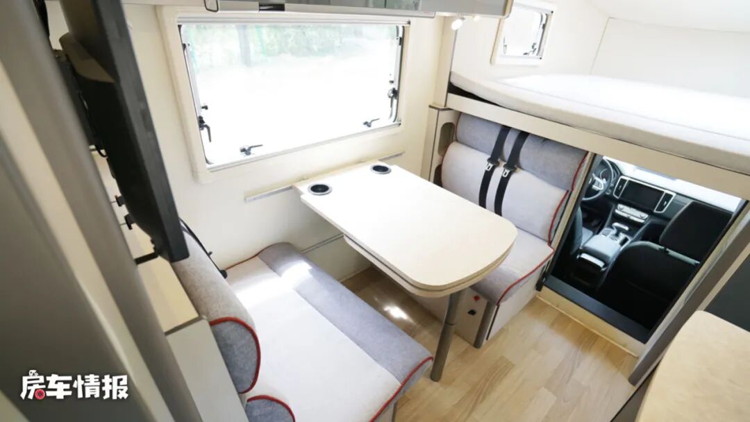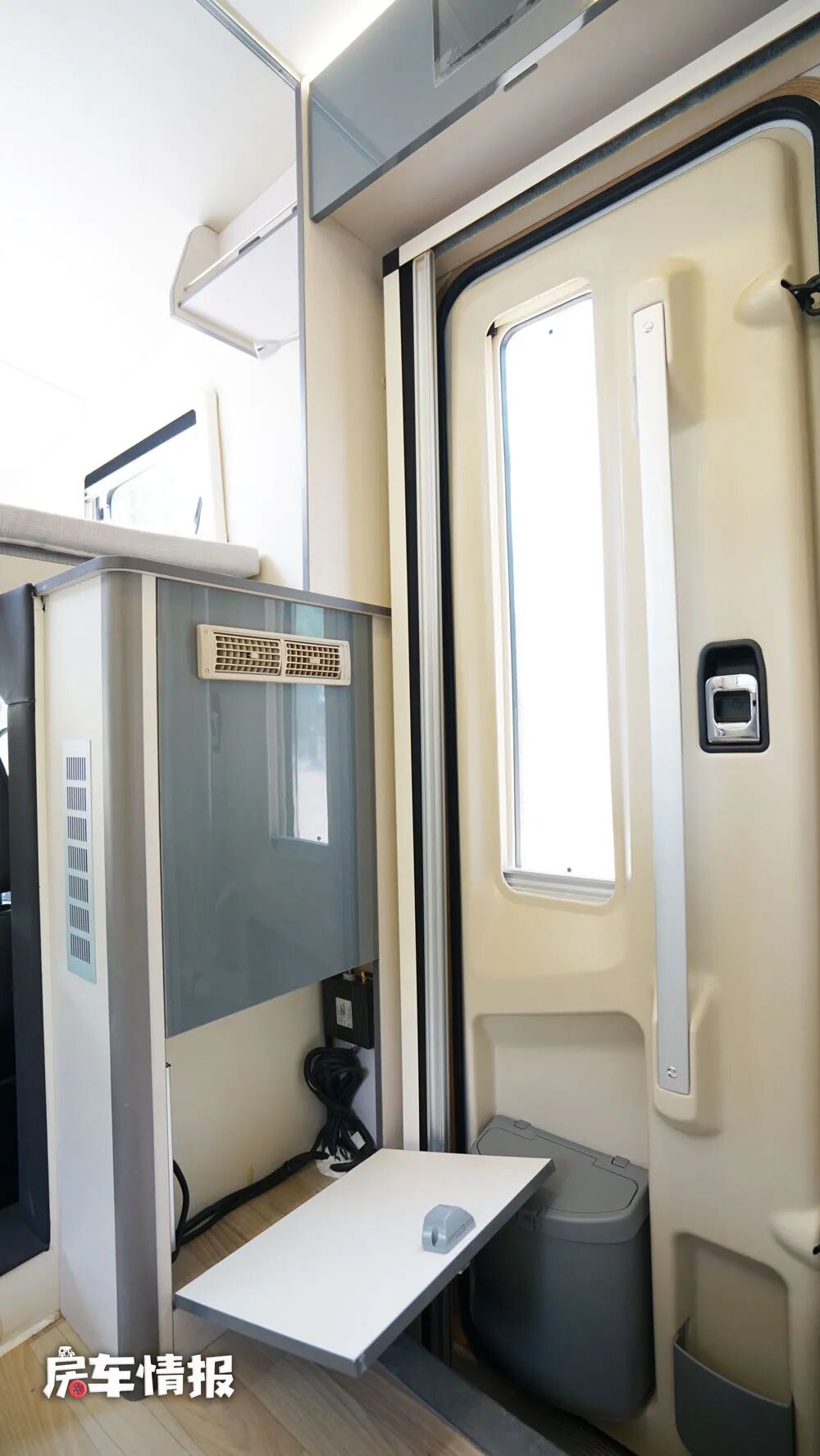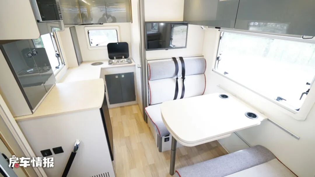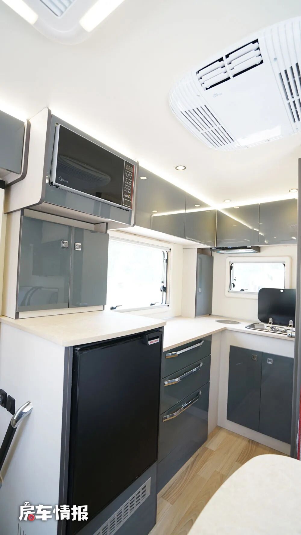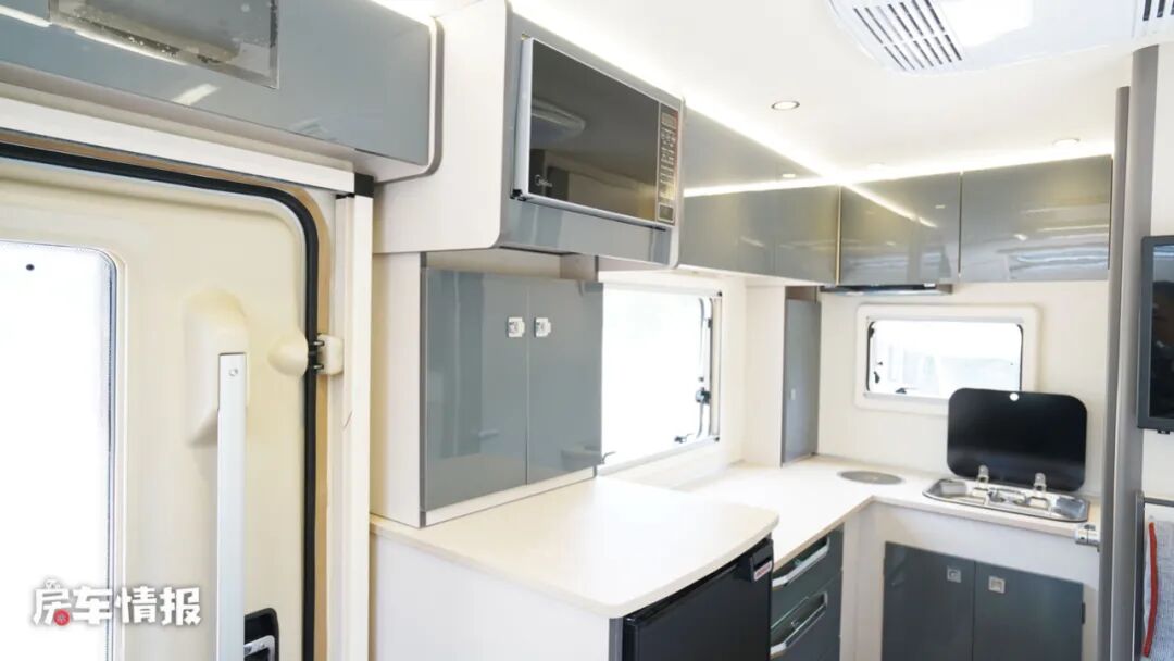 和柴油版最大的区别就在于厨房区域,取消了柴油版车型上的152L冰箱,变成了一台85L冰箱,为此原本是个“小隔断”设计,就显得非常通透。