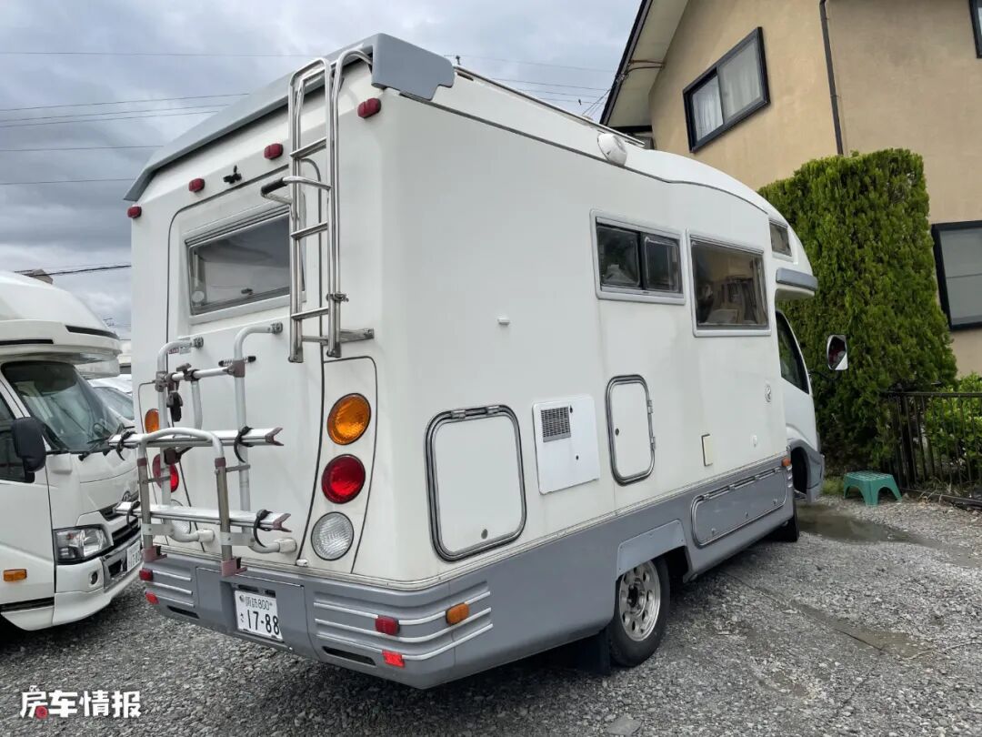 在外观上,和我们国内方方正正的平头造型不太一样,整辆车是采用了弧形的线条设计,看起来更加灵动,长宽高分别为5150*2110*2950mm,和日本主流的轻卡房车保持相当,车尾部也加入了自行车架和爬梯,方便日后的使用。