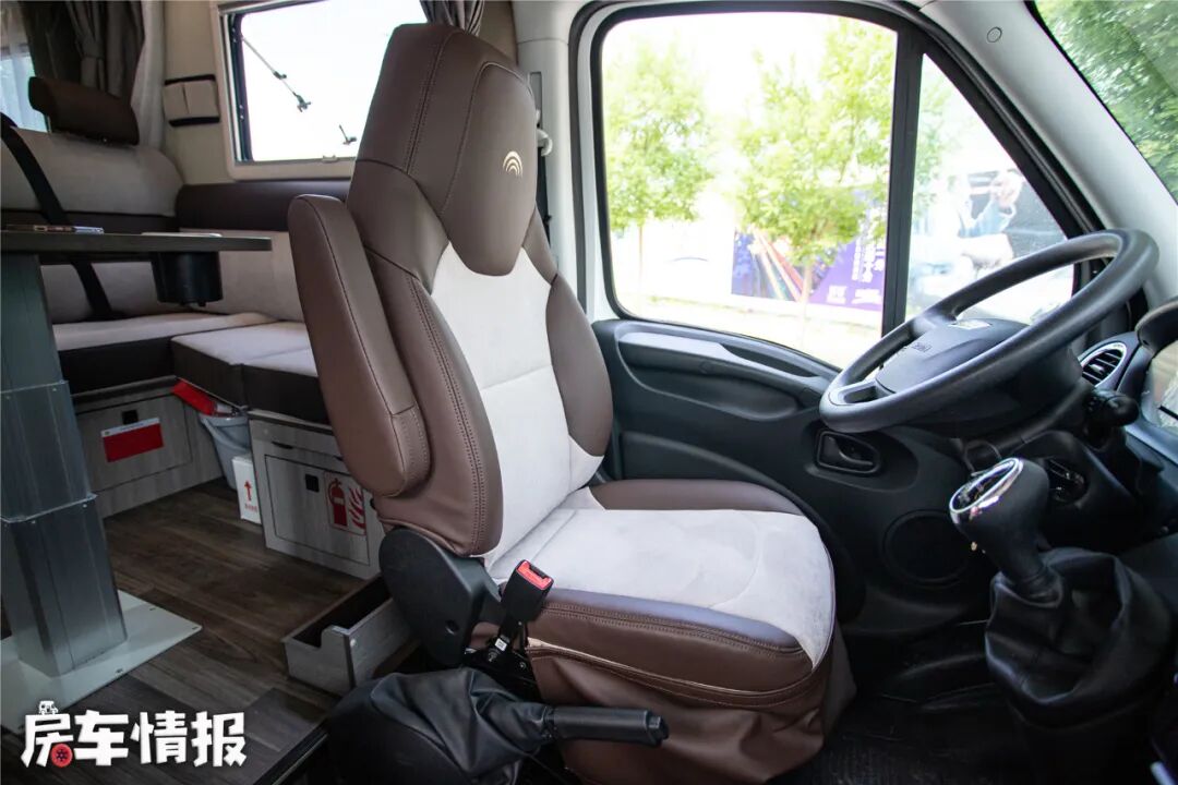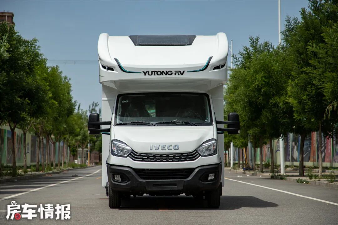 说回这款房车,这是一款基于南京依维柯欧胜底盘的打造的标准大额头自行式C型房车,比较主流的设计,能够符合大多数人的购车需求。全新家族化的车身拉花,简约清新,比起市面上那些浮夸的车贴,显得更有大品牌风范。