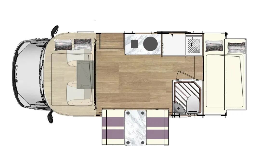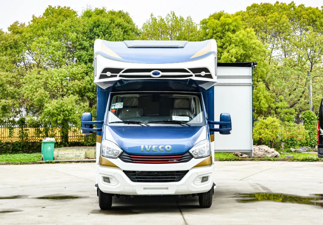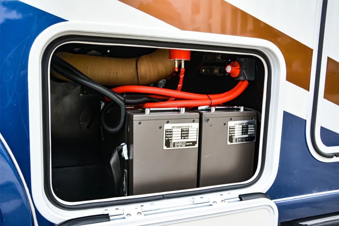 左侧配有3.5米多美达遮阳棚,外置淋浴器,车外注水口带有取水功能,关于水路系统方面,新车采用230升+70升双水箱设计,灰水箱也达到了70升,这样的水路配置在当前同级车型中占有优势。