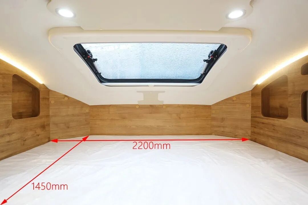 小额头不仅有1450*2200mm的超大双人床。同时有一个可收起的32寸12V安卓电视。小米盒子加车载wifi提供良好的娱乐体验。更有百度智能音响控制系统,提升了全车的智能化。