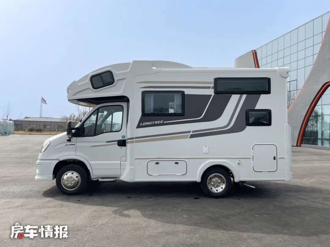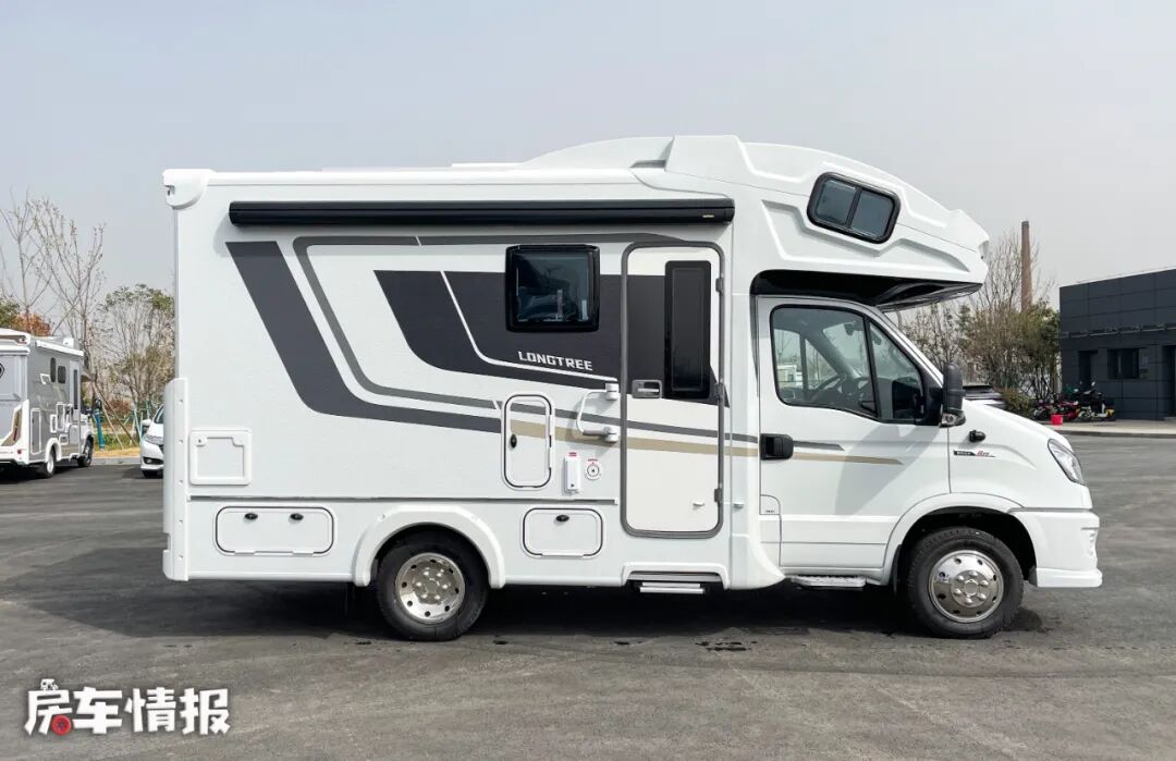 这款车就是搭载了依维柯欧胜底盘所打造的一款C型房车,在外观上,这款车也非常有自家品牌的亮点,多线条的额头造型为整辆车加入了阳刚之气,尺寸方面长宽高分别为5995*2450*3190mm,日常也满足蓝牌C本的驾驶规定。