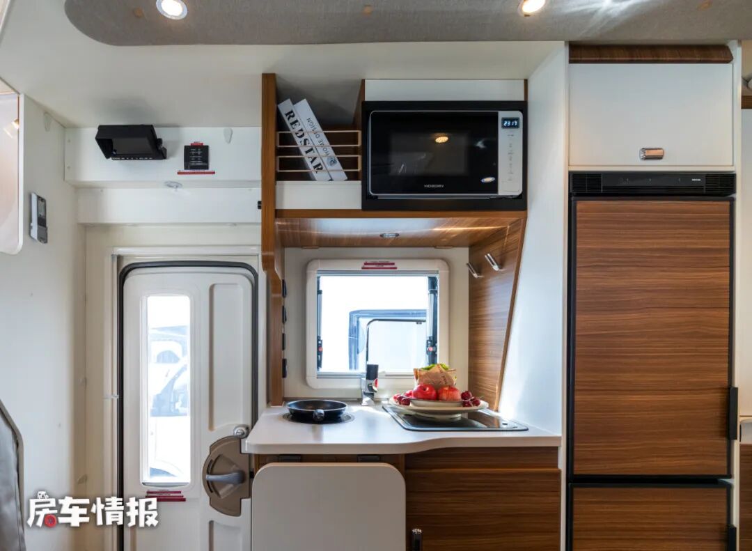 在水电方面,这款车的配置也比较不错,是提供了3000W逆变器、12V 400Ah锂电池、300W太阳能电池板、210L净水箱和40L灰水箱,对于一家人的日常使用还是能够满足的。