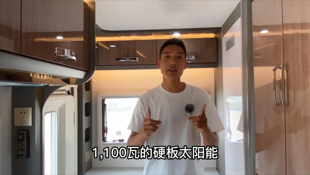 电力系统方面,这款车也很有看点,整车标配3000W逆变器、1000Ah锂电池(相当于12度电)、1100W的如果新能源太阳能电池板,采用单晶硅足功率的太阳能电池板可以为房车电力提供更多保障,另外还提供5年质保服务。另外底盘带有150A双发电机,配合独家开发的双发并网发电系统,行车状态最多一小时可以补充3.5度电,外出旅行真的可以做到用电无忧;如果对这还不满足,还可以选择高配车型,提供了1200Ah锂电池和1900W电动伸缩+固定太阳能板。