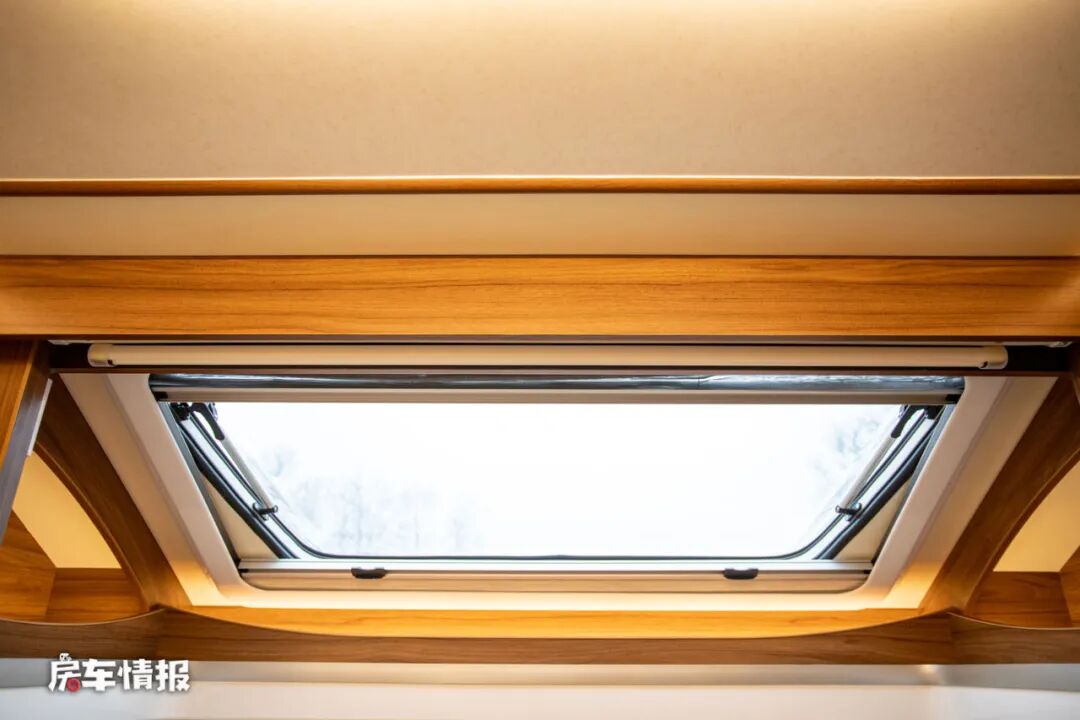 因为采用了小顶的设计,所以在驾驶室的顶部也配置了一台可开启的大尺寸天窗,这样为整个车内营造出了非常通透的采光度。