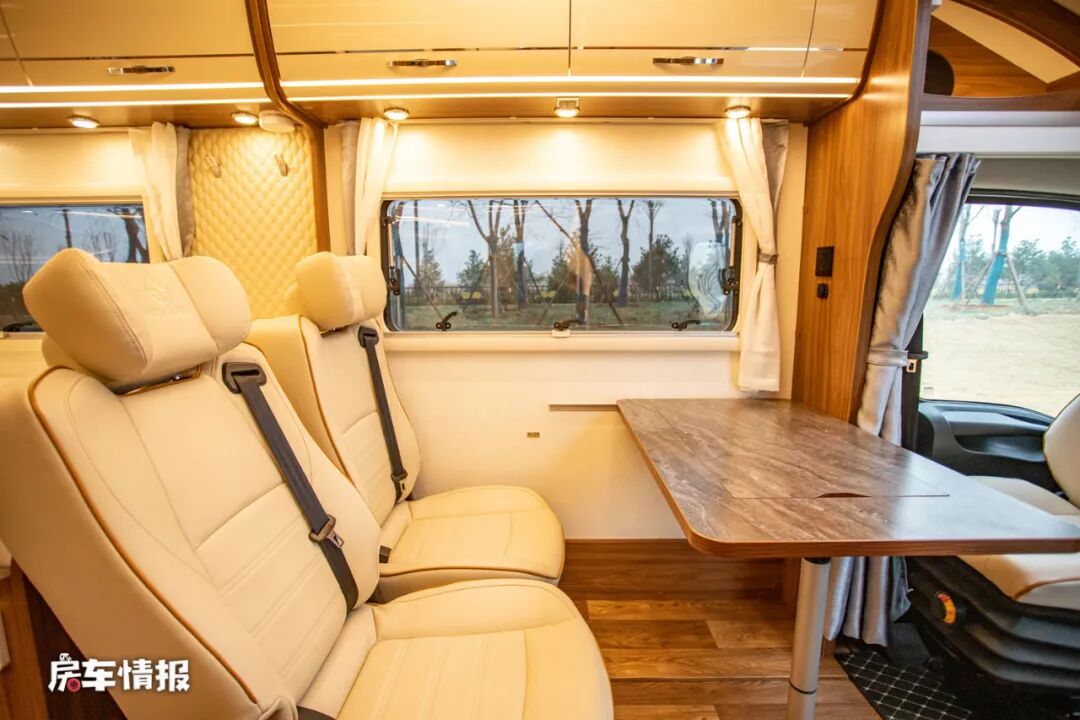 车内的设计可以用豪华两字形容,整体的做工和精致度完全不输给进口房车,相信大家也能够感受到。
