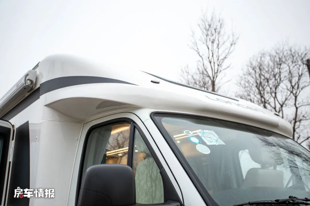 这款T55的小顶C型房车,是朗宸在年初刚刚推出的新品车型,顺畅灵动的小顶设计就为整辆车带来了更为年轻时尚的活力感,整辆车的长宽高分别是5995*2385*2980mm,对比一般的大额头车型,其通过率更高,内部的空间对于两个人来说也是足够用的。