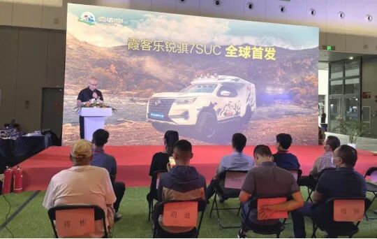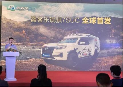 锐骐7SUC是霞客乐本次展会推出的新品,是集‘越野车、房车、代步车’为一体的多功能越野旅行车,相比锐骐6SUC,配置已全面升级,更适合广大车友使用。”
