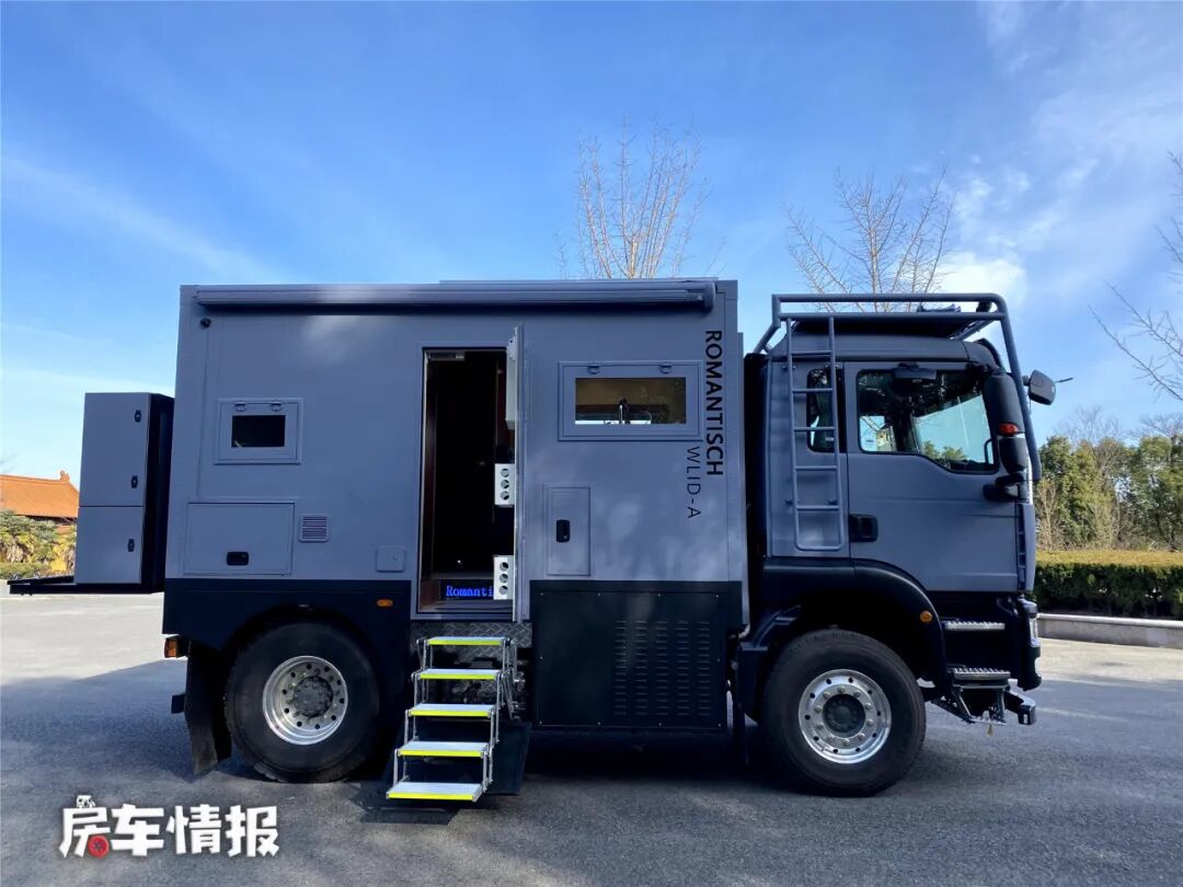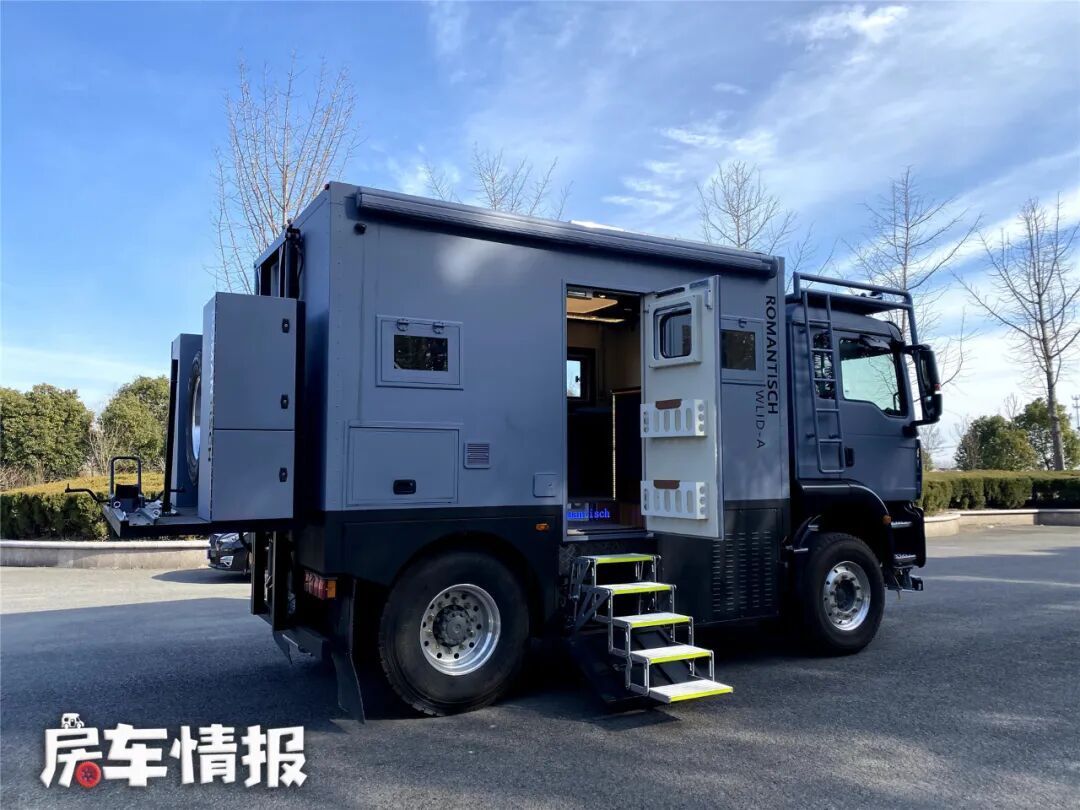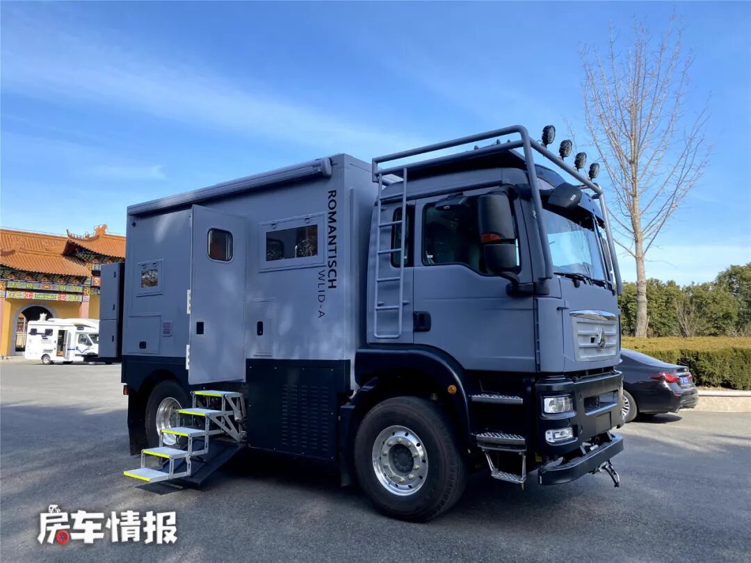 这款基于重汽汕德卡打造的罗曼斯特房车,外形强悍,越野设备齐全,颜色简约又不失稳重,给人以满满的安全感。