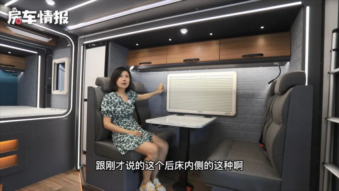 除此以外内部还提供了充足的水电配置以及三张床,在宽敞的生活区空间里打造出了一个三居室的状态,基本上一家4-6口人都能住的下,另外车内还有一个比较有趣的设计,那就是来自额头床前方的雾化玻璃,要知道这可是只有在商务车上才会出现的设计。