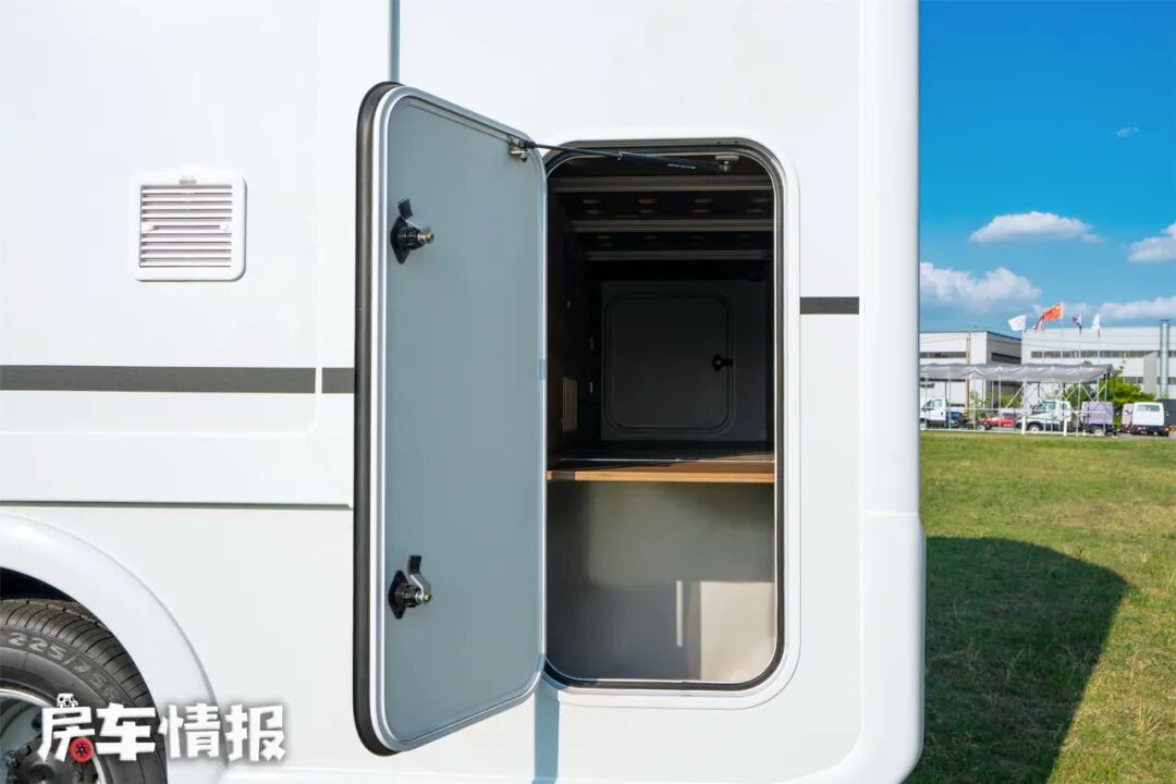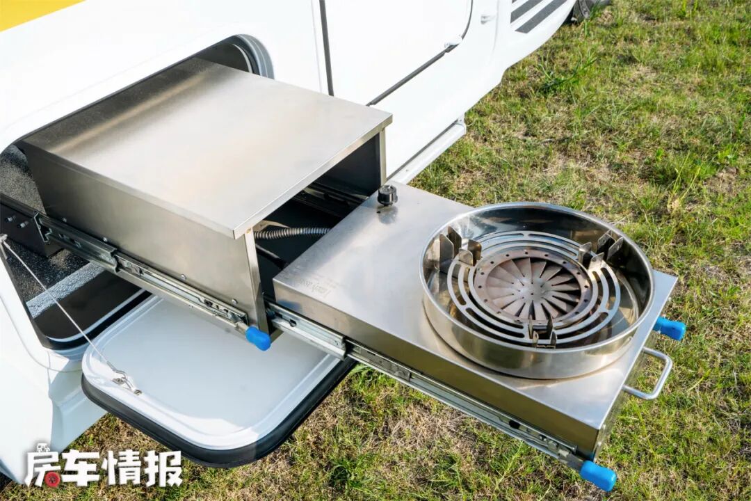 车身外部也提供了比较齐全的设备,如手动遮阳棚、贯通式储物箱、抽拉柴油灶等,基本上能够满足日常使用所需。