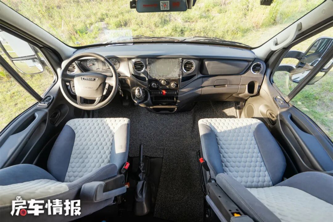 仔细看也能发现,车身大面积的灰色涂装从驾驶室部分一直延伸到后厢体上,提升了车身的一体化程度,看起来整体感更强,我个人十分喜欢这种配色样式。(PS:同样的配色方案也多出现在进口C型房车上,这无疑也提升了整车的高级感)