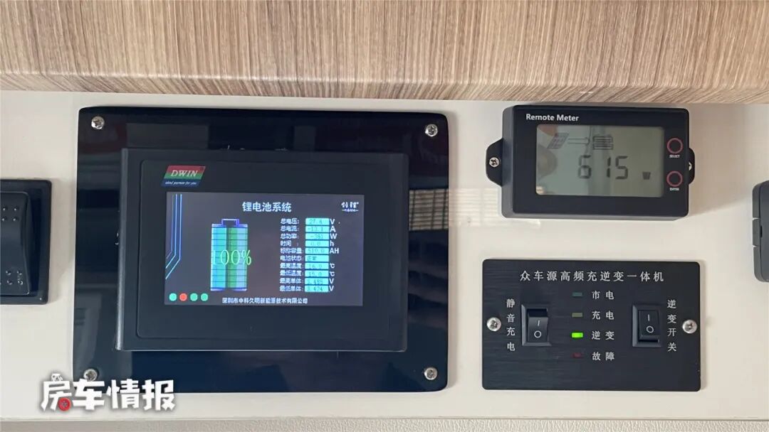 水电方面,本车搭载了400L独立清水箱、130L保温清水箱、110L灰水箱以及24V 500AH锂电池系统、5000W高频逆变器、3000W高频逆变器,为了方便大家在户外的使用,还装有2000W太阳能板、大流量双水泵和压力罐,同时还有40L旌航专用热水器、5KW柴油驻车暖风,可谓是设备齐全,让大家在户外的生活更加舒适、方便。