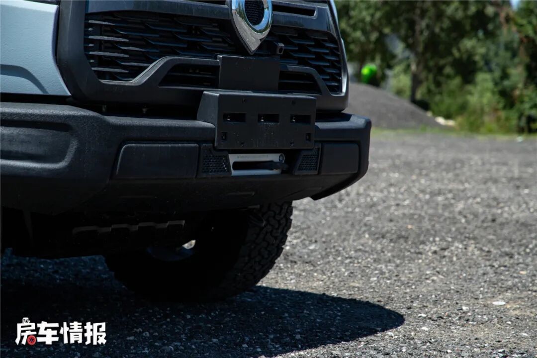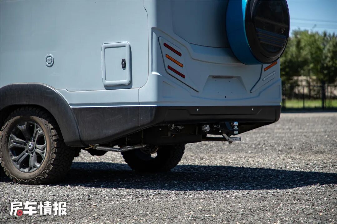车尾部还提供了拖车钩以及电源连接线,搭配2.5吨的牵引资质,方便后期牵引房车或者小拖车,不过前提需要升级C6驾照。