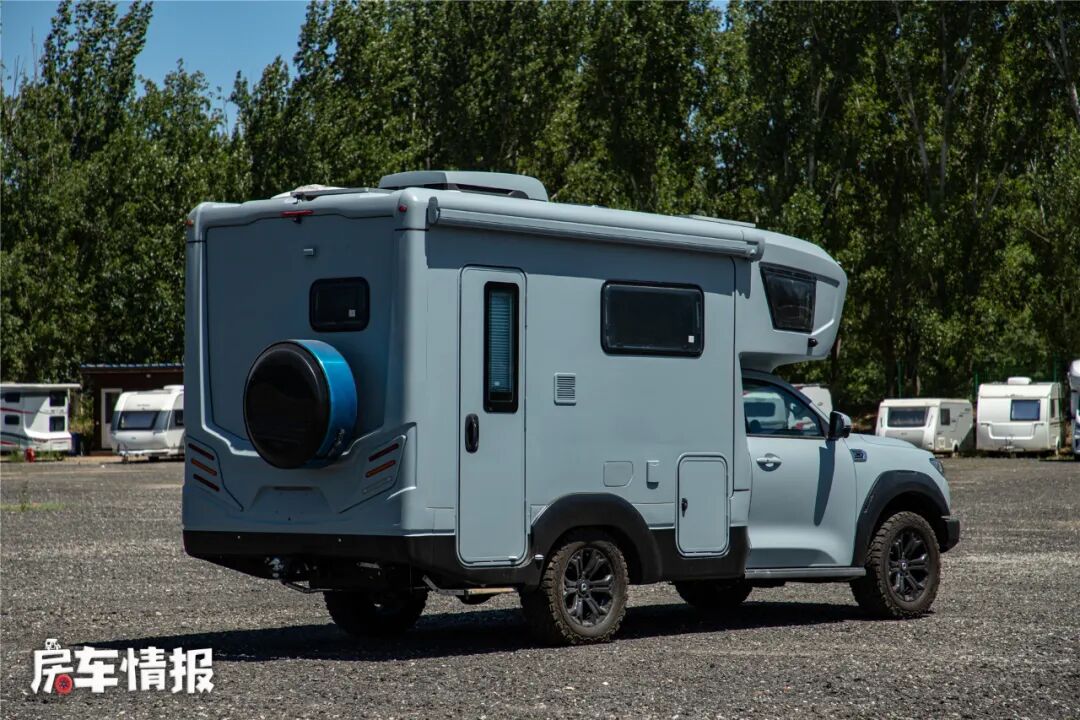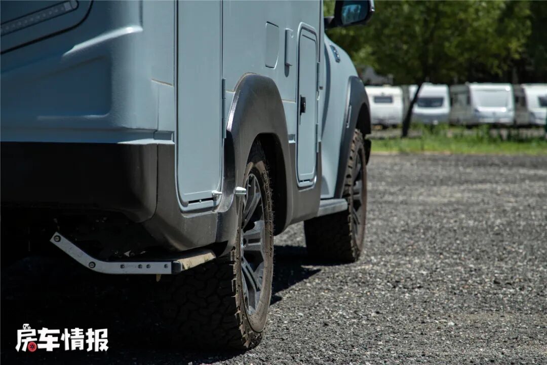 车尾部还隐藏着一部电动驻车支腿,这也是在国产皮卡房车上十分少见的配置。