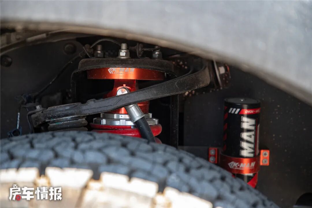 轮胎也升级为百路驰K02的全地形越野胎,提升了在非铺装路面行驶时轮胎的防刺穿能,另外整车还加入了前后K-man氮气减震,进一步强化了行驶时的稳定性和舒适性。